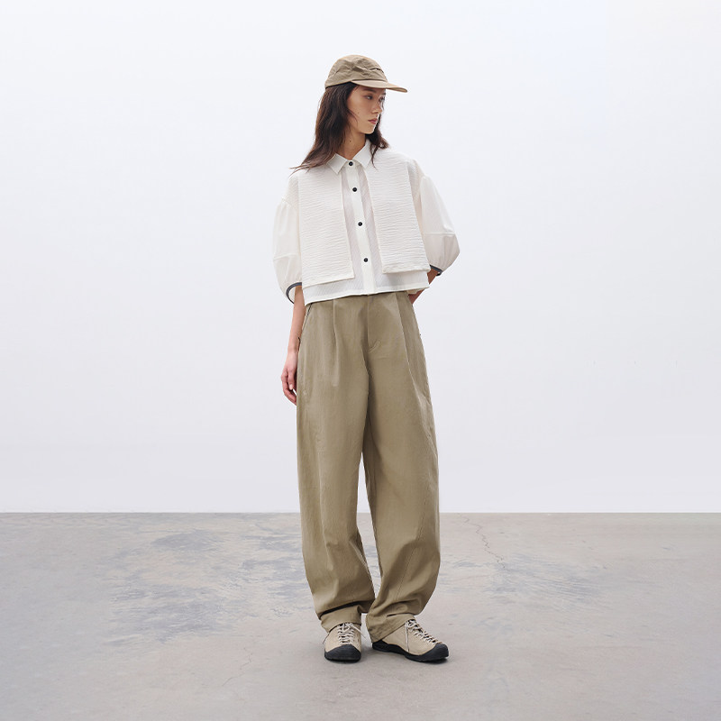 宽松休闲分割感不规则收脚裤 运动 子女 2026春 半圆原创设计女装