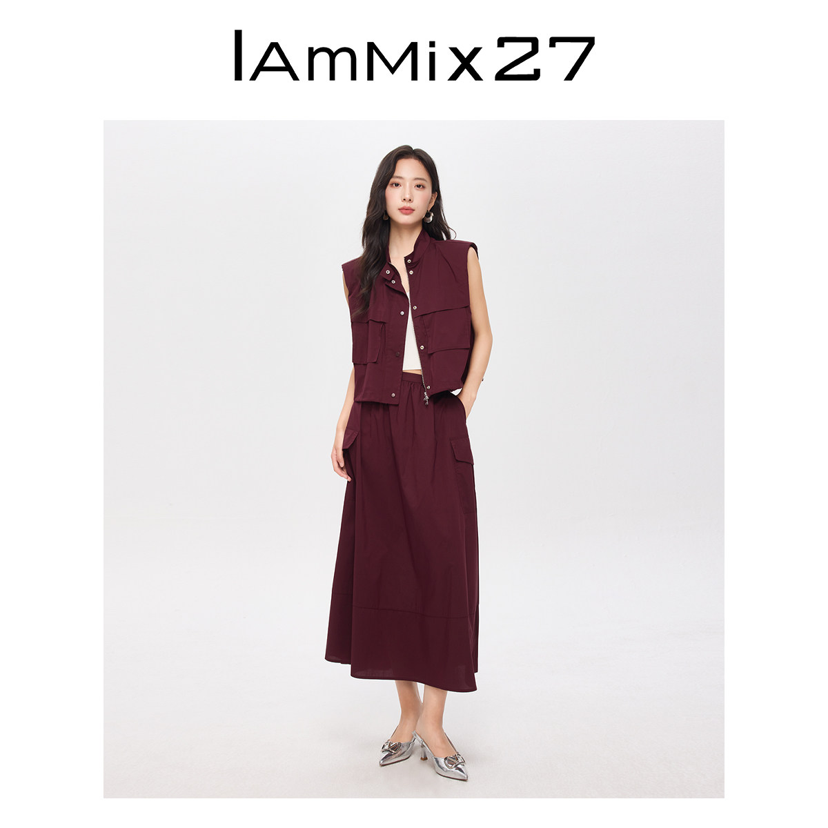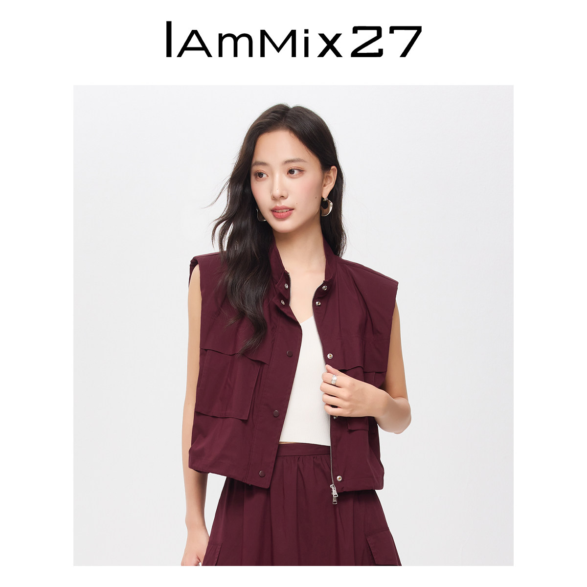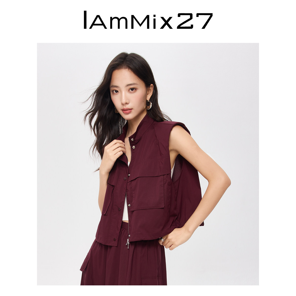 外套女薄款 风宽松休闲百搭无袖 工装 IAmMIX27立领叠穿马甲女短款