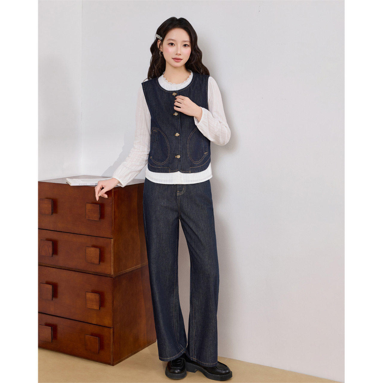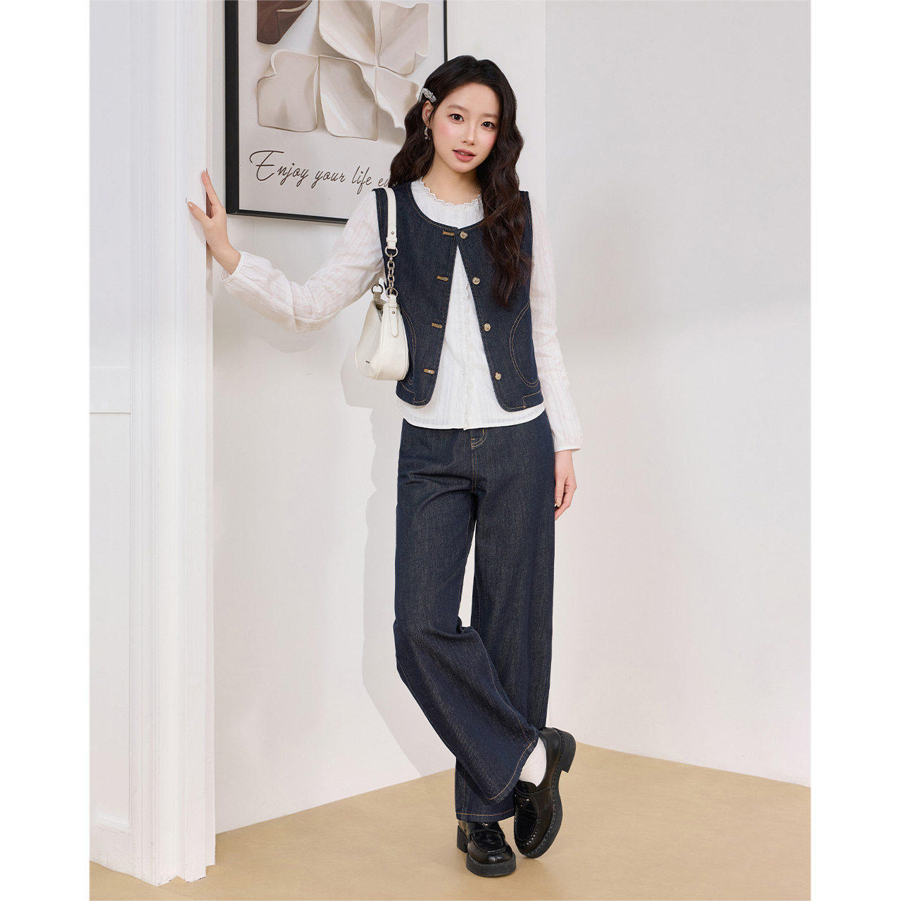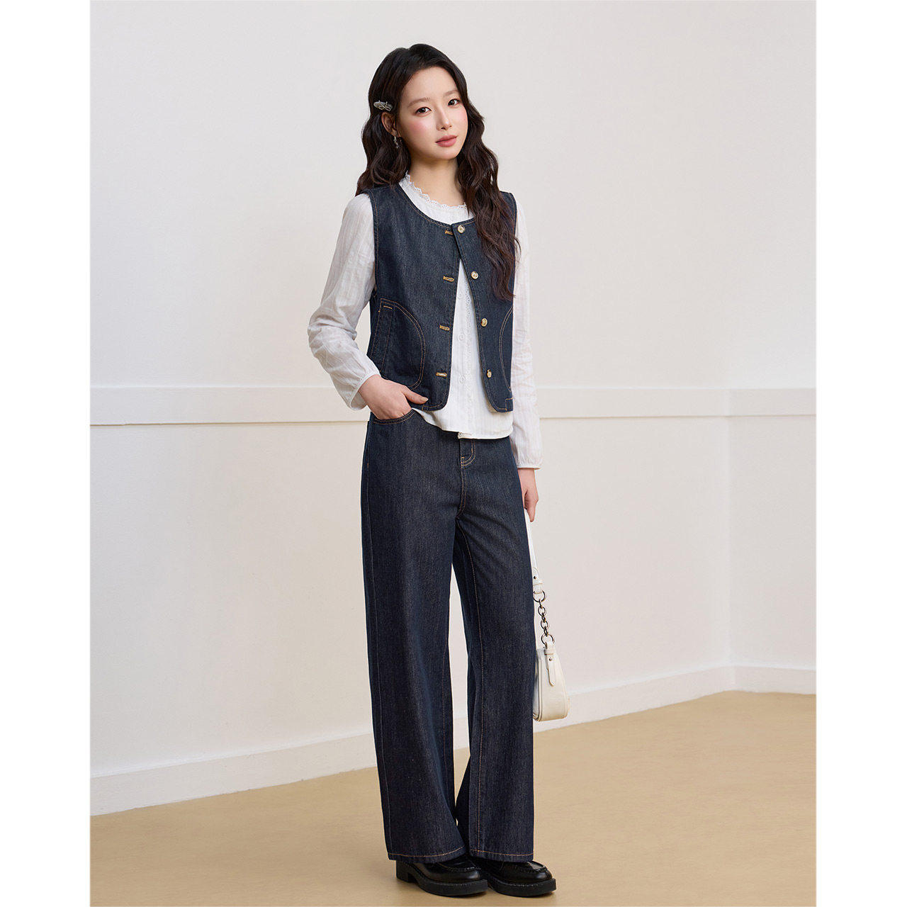 2026春季 小个子专属 新款 法式 IEF 气质感牛仔上下套裤 爱依服