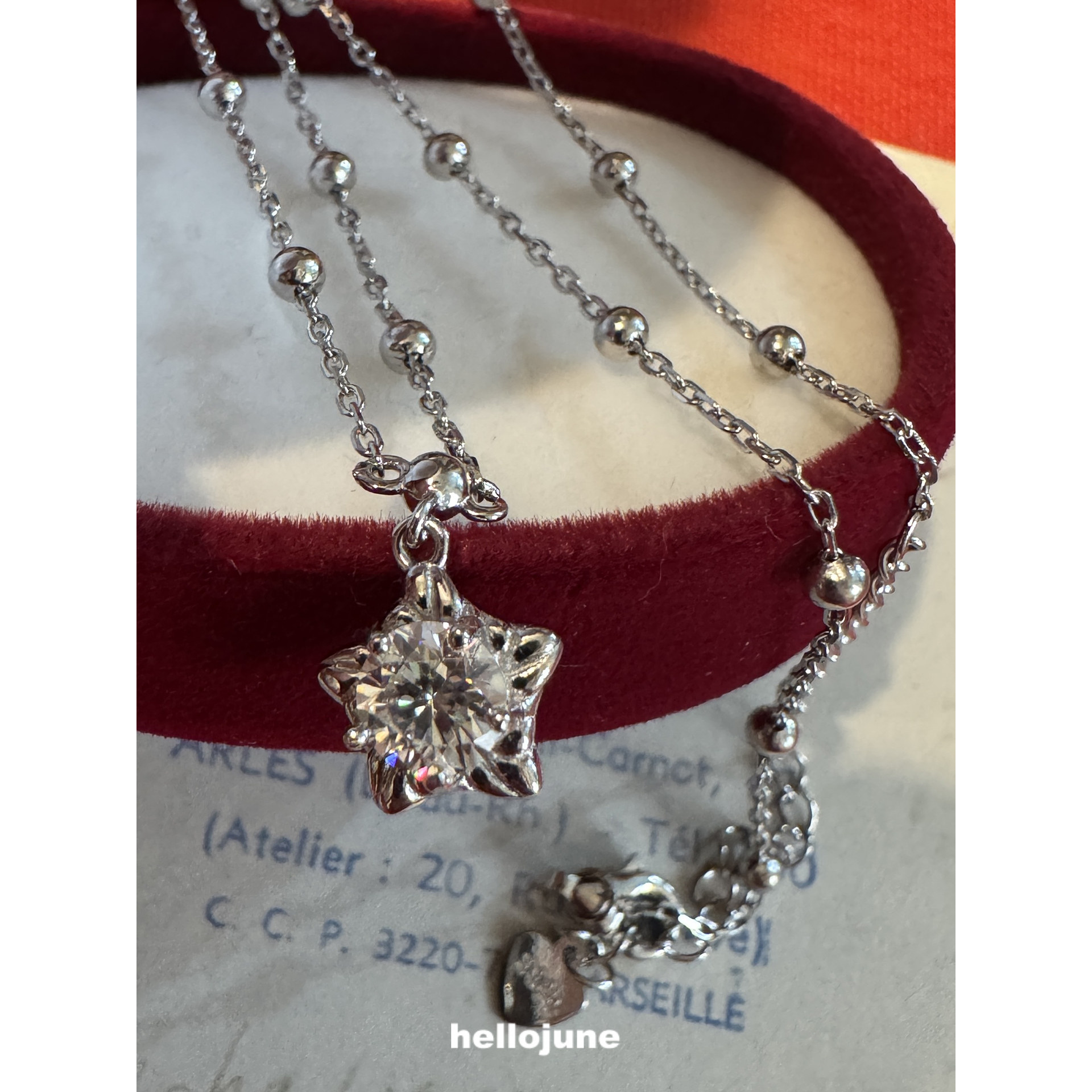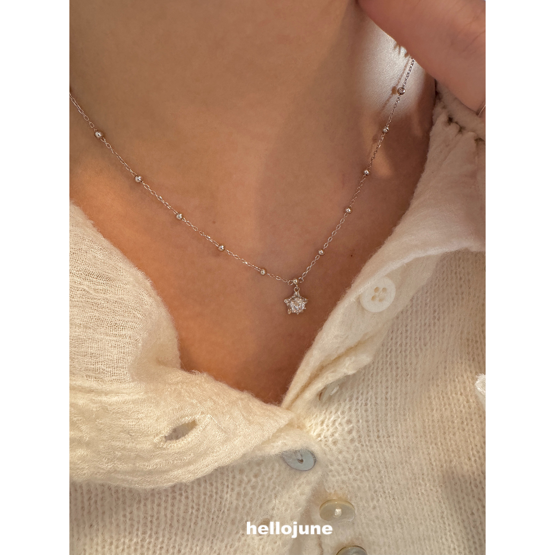 螺纹星星项链 莫桑钻 精致五角星圆珠链毛衣链 925银 hellojune