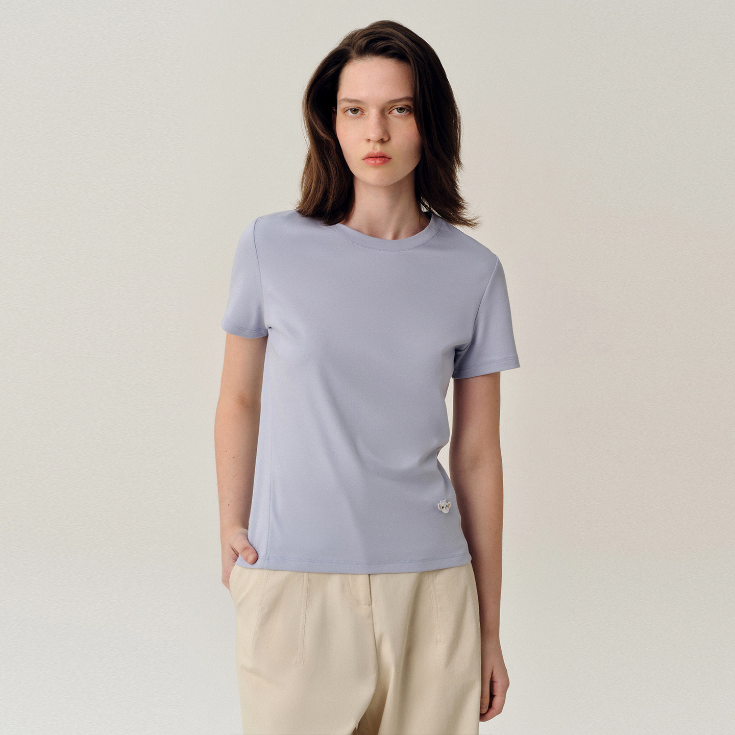 短袖 液氨棉修身 T恤女春夏百搭显瘦简约套头打底上衣 萤火 羊织道
