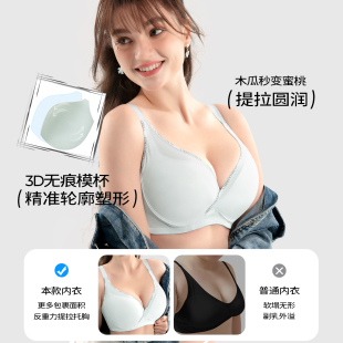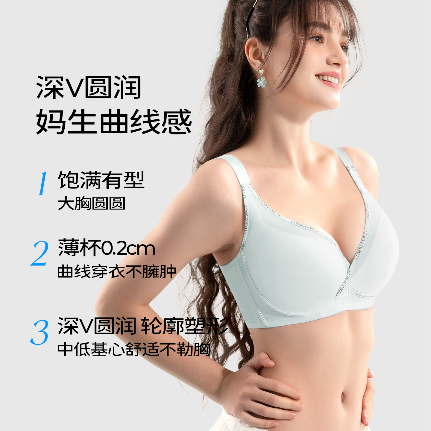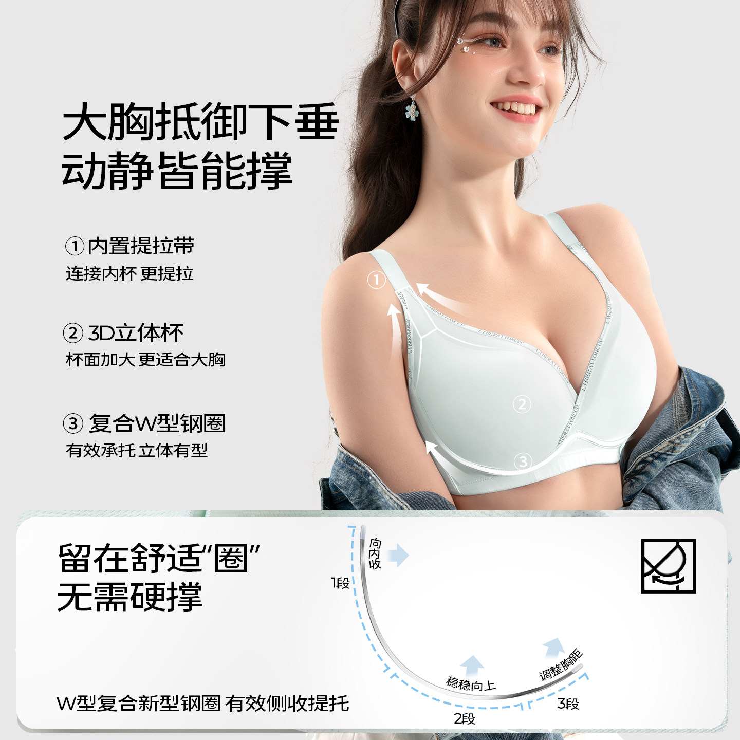 糖粒无痕内衣大胸显小大码 胖mm聚拢上托收副乳调整型有钢圈文胸罩