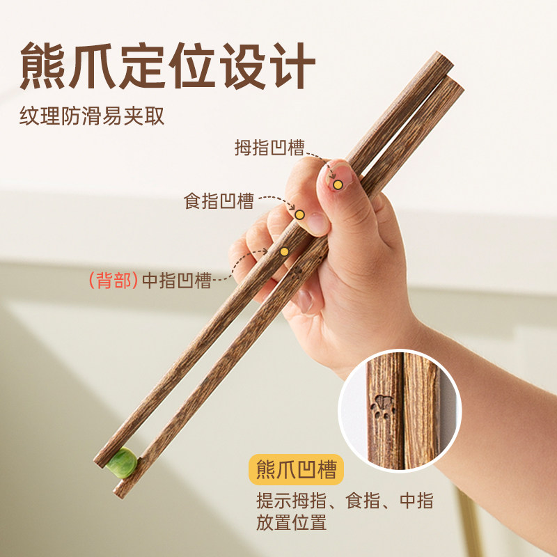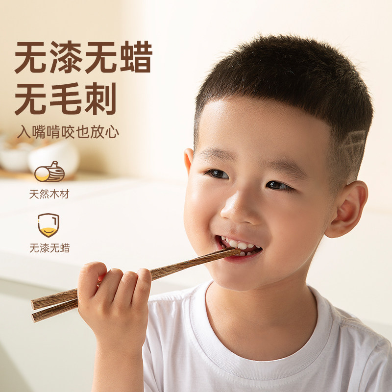 双枪鸡翅木儿童筷3岁6岁训练筷0漆0蜡宝宝筷食品级小学生专用