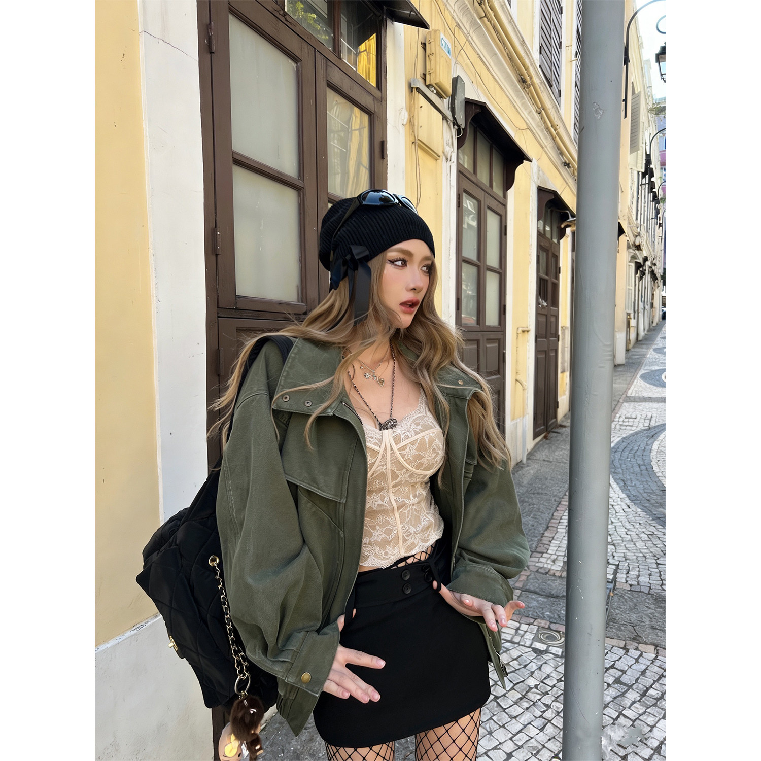 休闲宽松廓形轻复古水洗工装 雪茄盒 夹克外套 Lin Xinlei