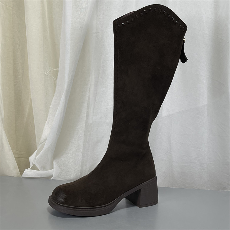 骑士靴厚底弹力靴女真皮2025冬季 复古加绒显瘦不过膝高筒长靴 新款