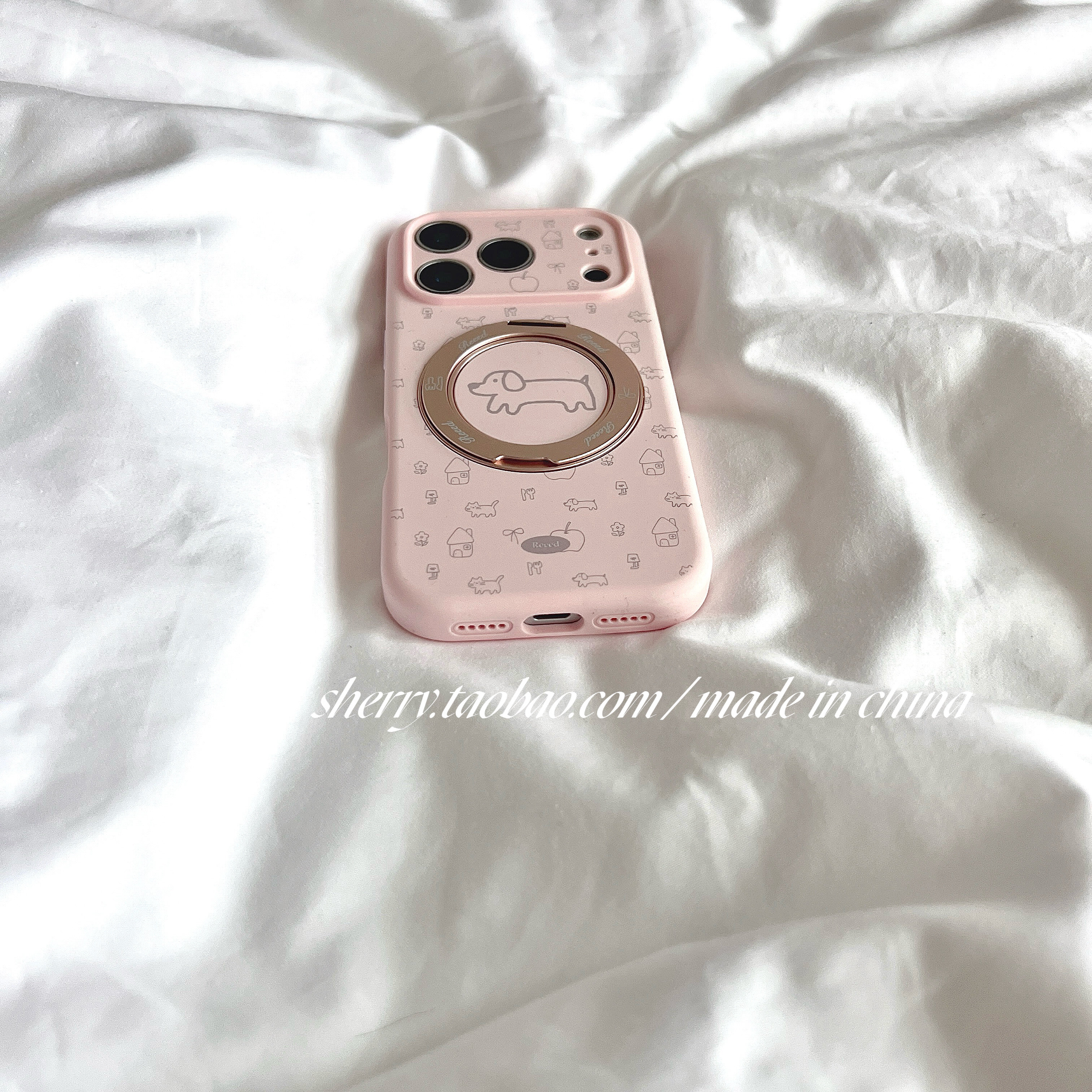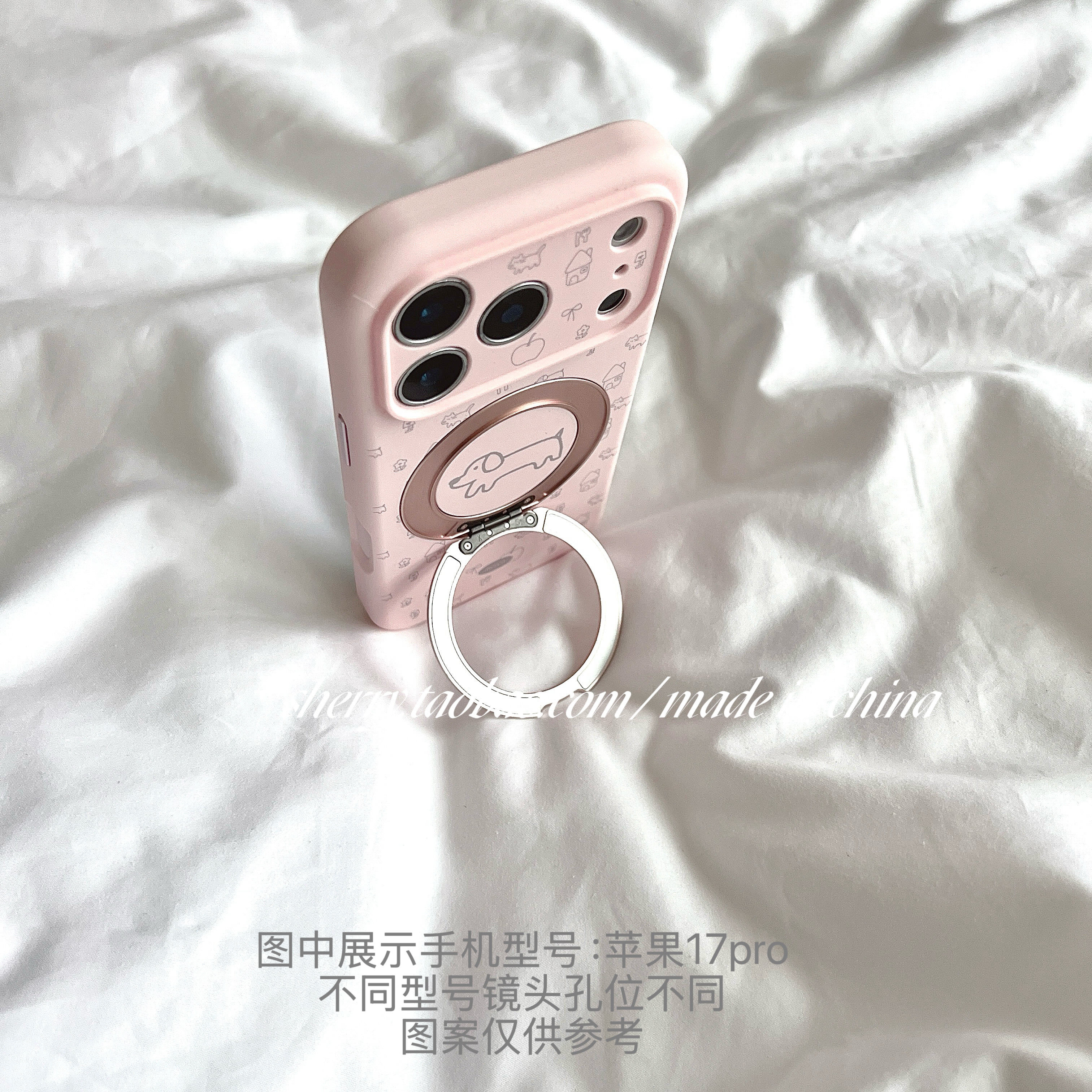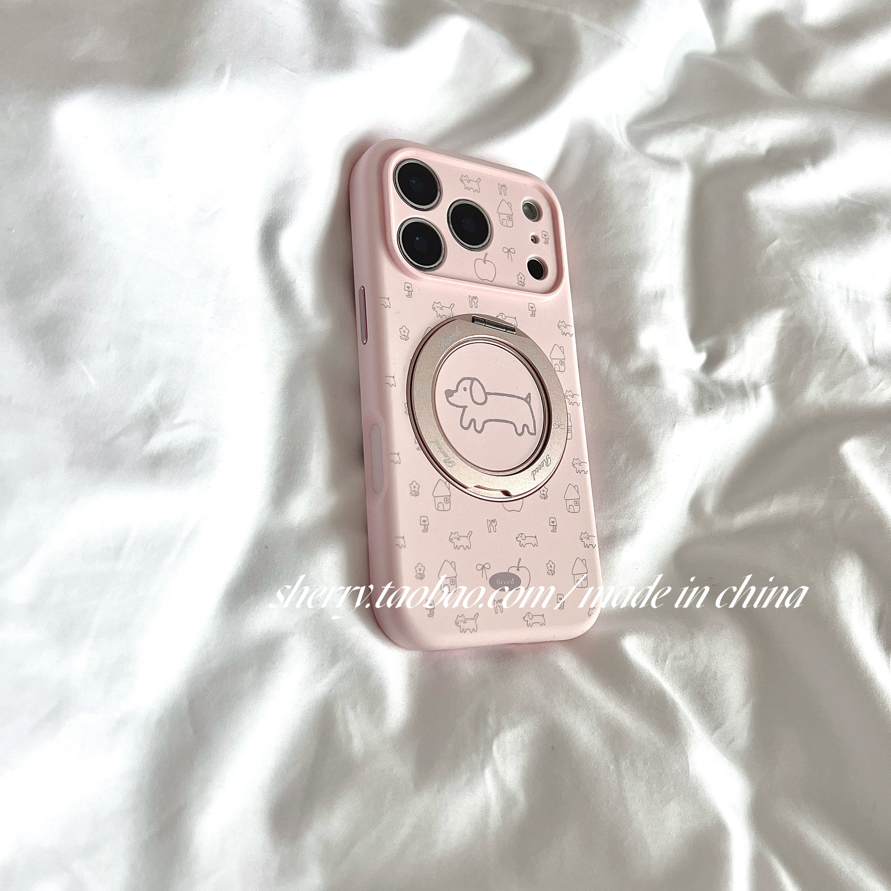 SHERRY ins风粉色线条狗狗旋转支架适用于苹果17ProMax手机壳iPhone16Pro小众少女心15简约14小清新卡通可爱