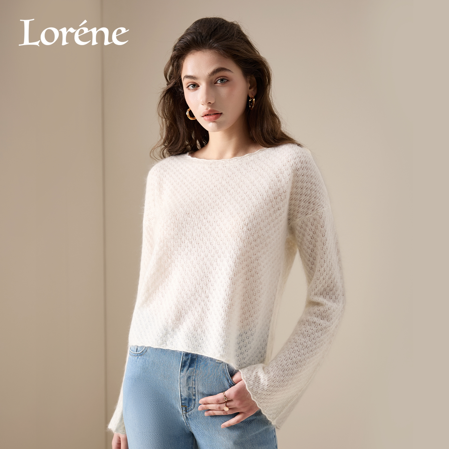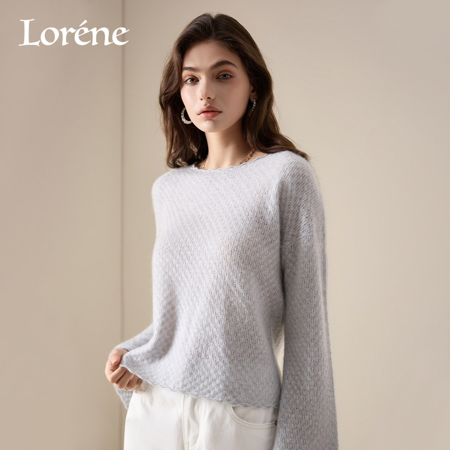 慵懒镂空罩衫 Lorene2026新款 法式 毛衣女落肩宽松山羊绒针织衫 春装