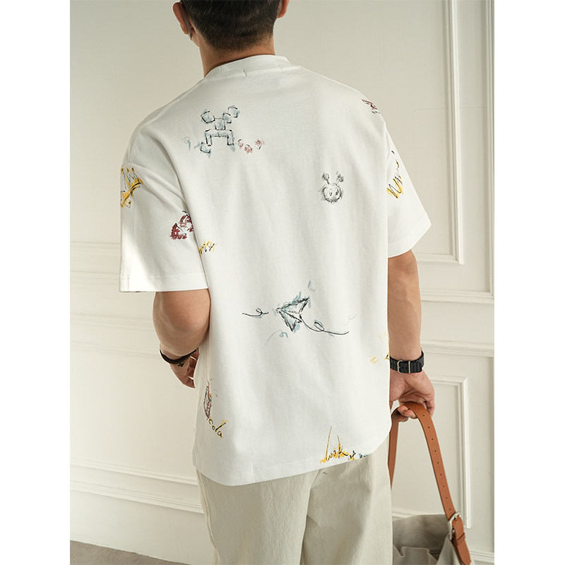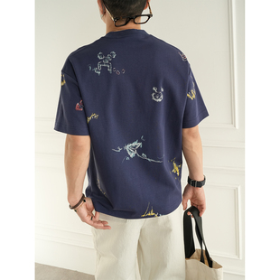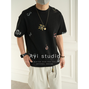 轻奢满印花绣圆领短袖 衫 T恤男早春潮流情侣款 百搭半袖 ins时尚 韩版