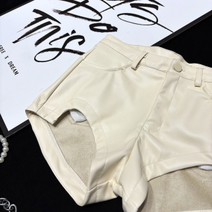 包臀蜜桃臀丰胯皮裤 提臀热裤 女 辣妹性感高腰PU皮短裤 CCA自制美式