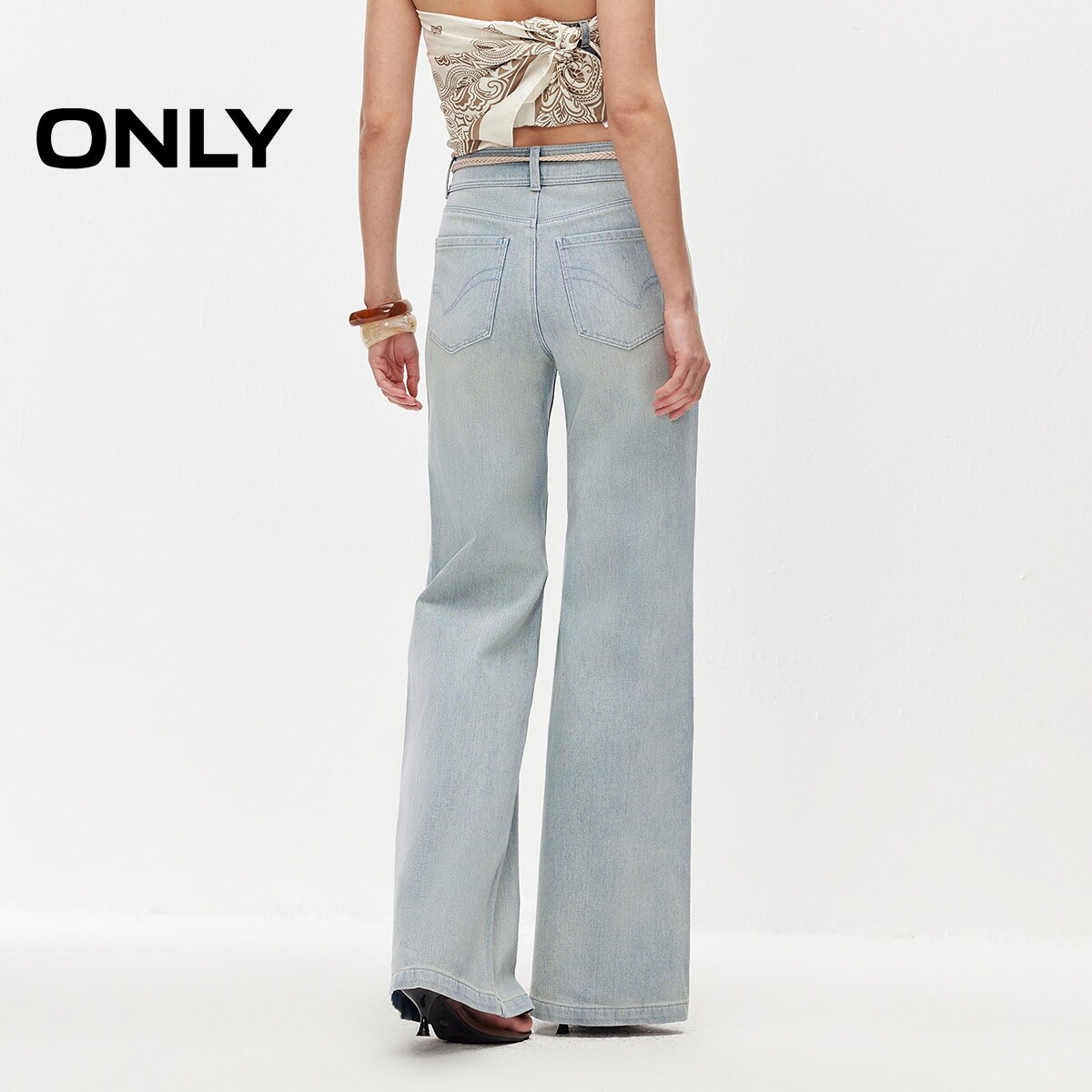 子高腰微喇牛仔裤 ONLY2026春季 饰显高显瘦裤 四面弹腰链装 新款