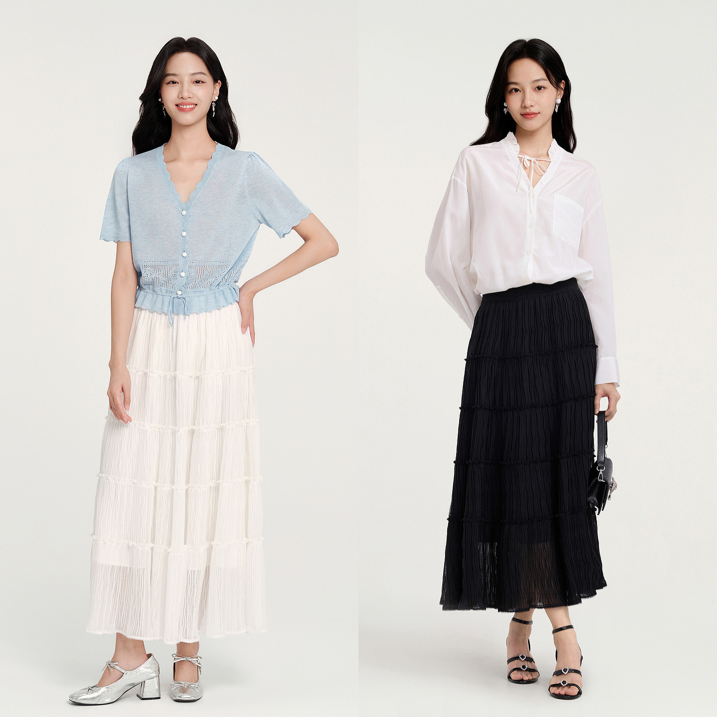 新款 肌理感半身裙仙女裙DOUBLOVE贝爱2026春季 褶艺风铃裙