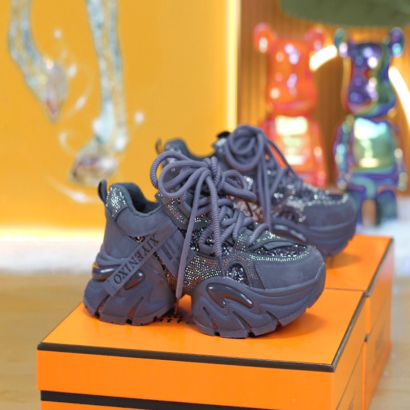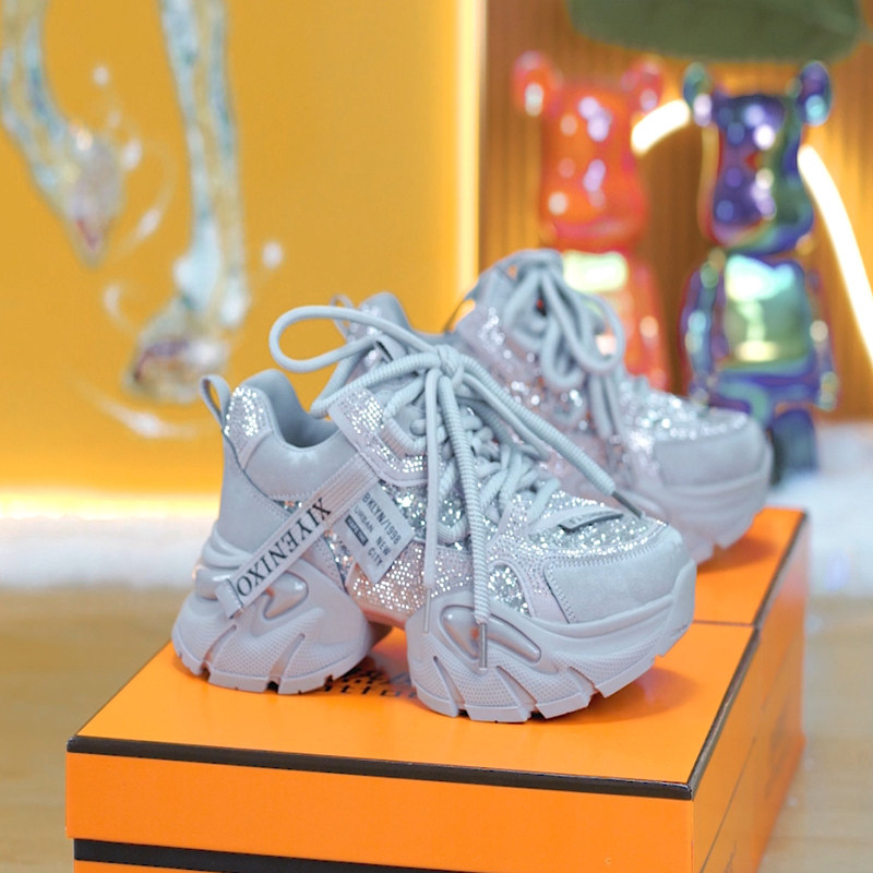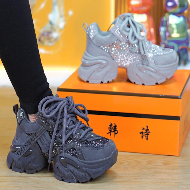 女 水钻透气超轻厚底老爹鞋 2026春季 小个子百搭6cm增高休闲运动鞋