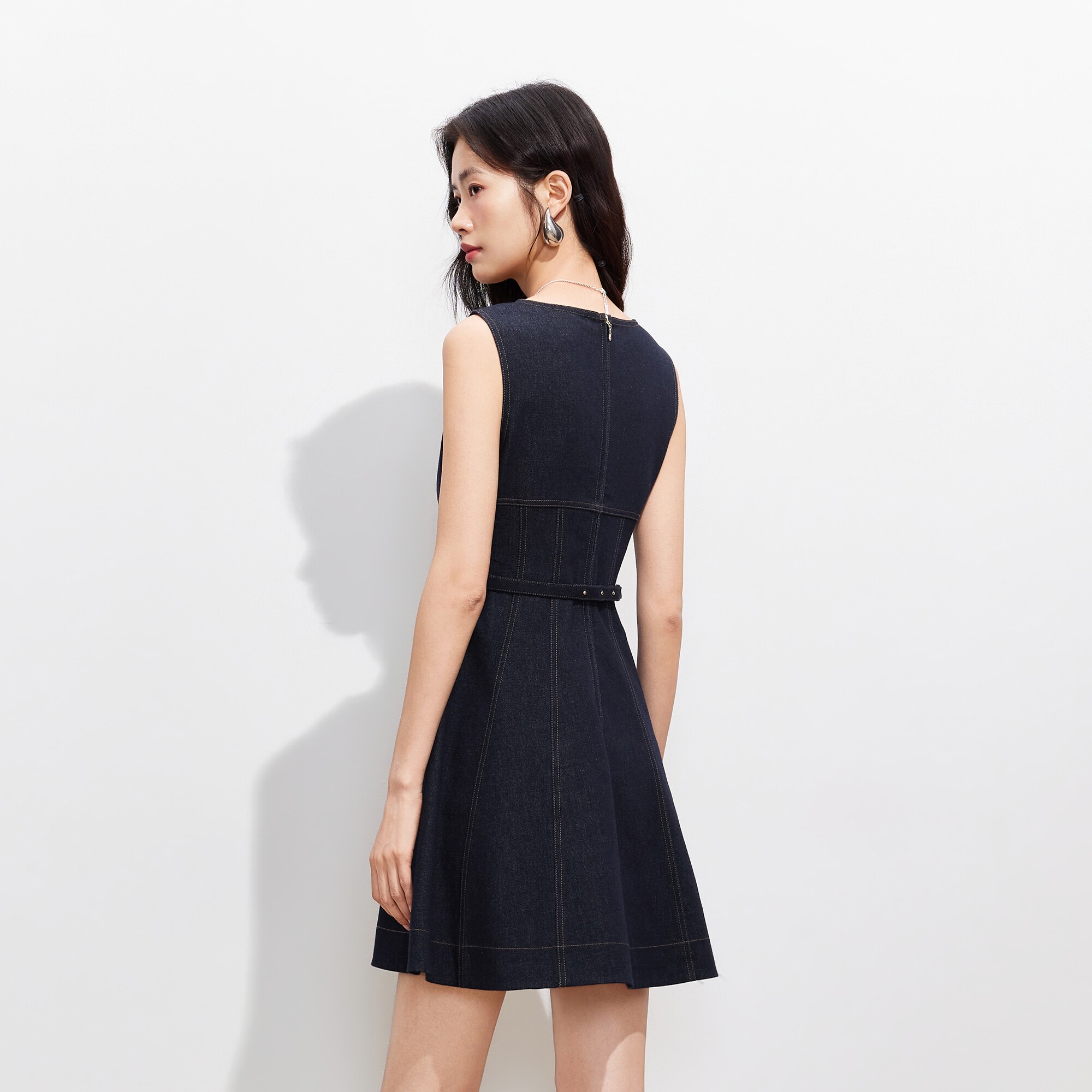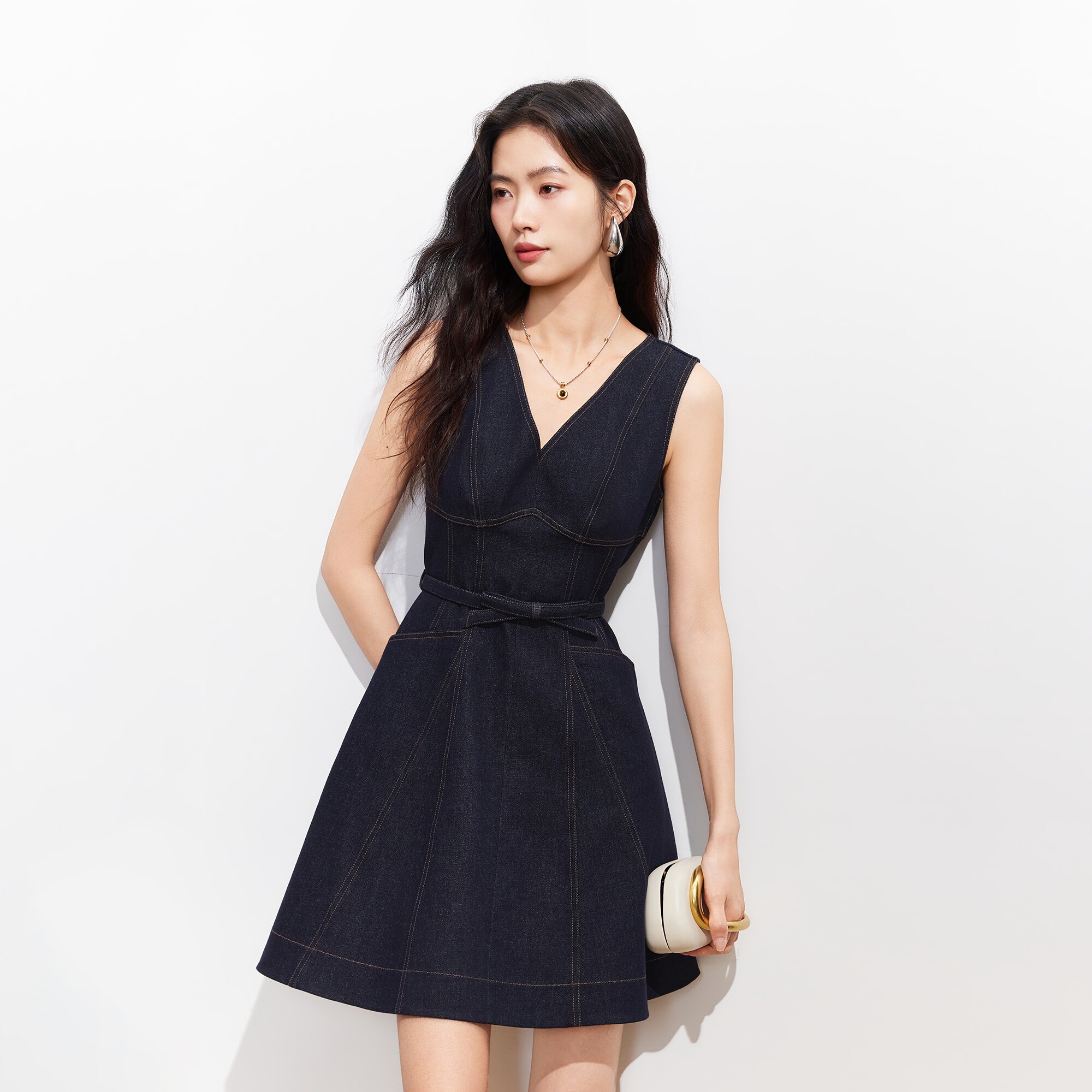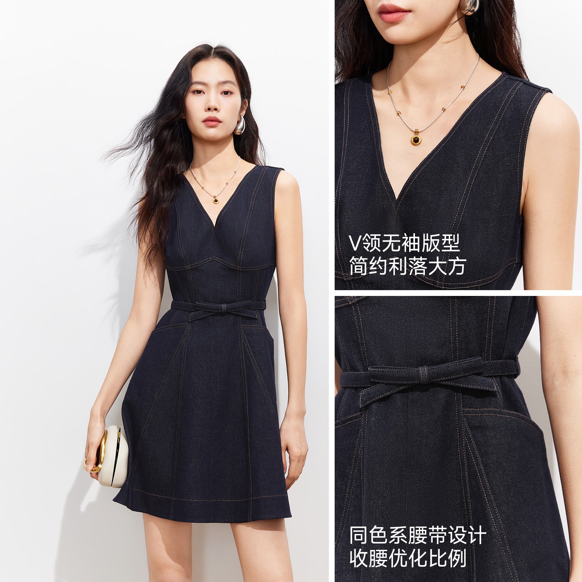 收腰A字裙 腰带明线V领无袖 Vero Moda奥莱连衣裙女2026春夏新款