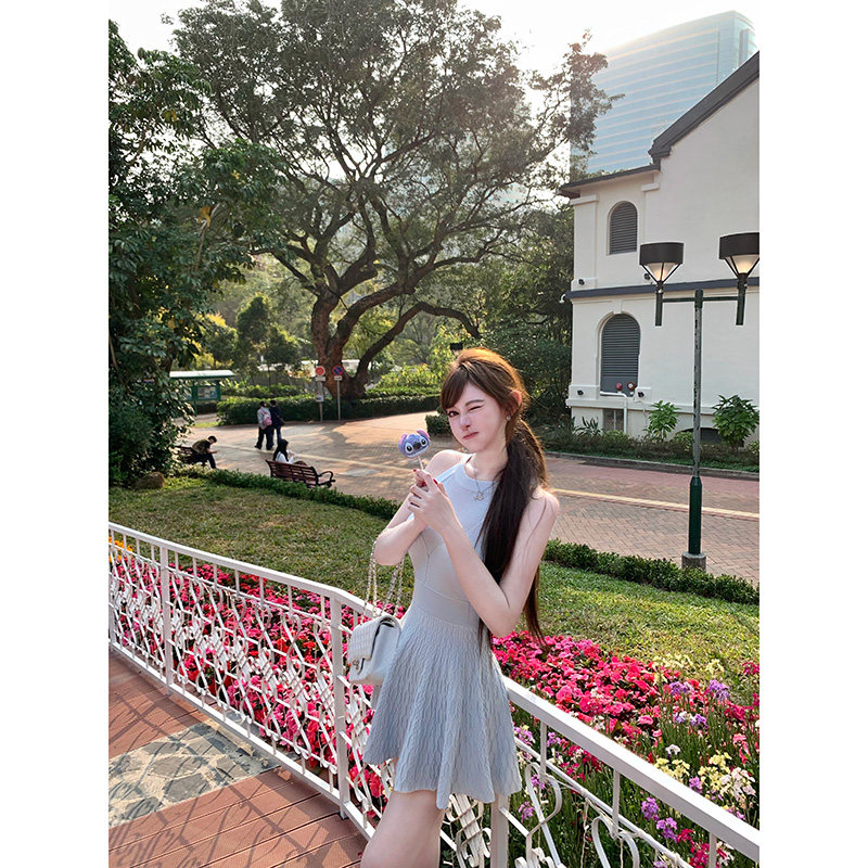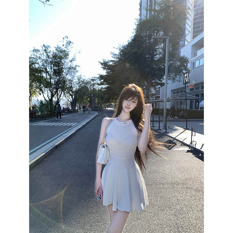 气质重工挂脖针织连衣裙显瘦蓬蓬半裙春夏 贝微微 With 99jiu