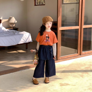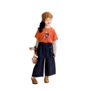 T恤波点打底衫 TOTObaby2026春季 卡通短袖 女童韩版 上衣两件套 新款