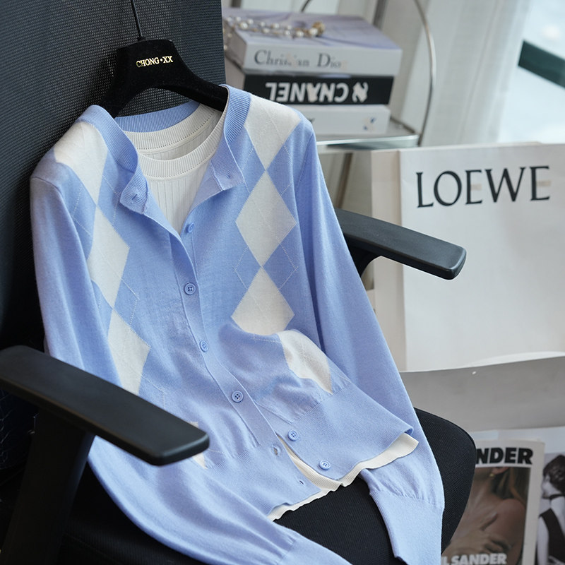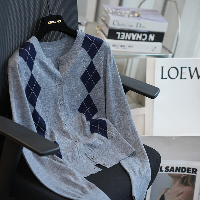 26春新款 毛衣打底衫 A102G 女薄款 可机洗羊毛学院风菱形格针织开衫