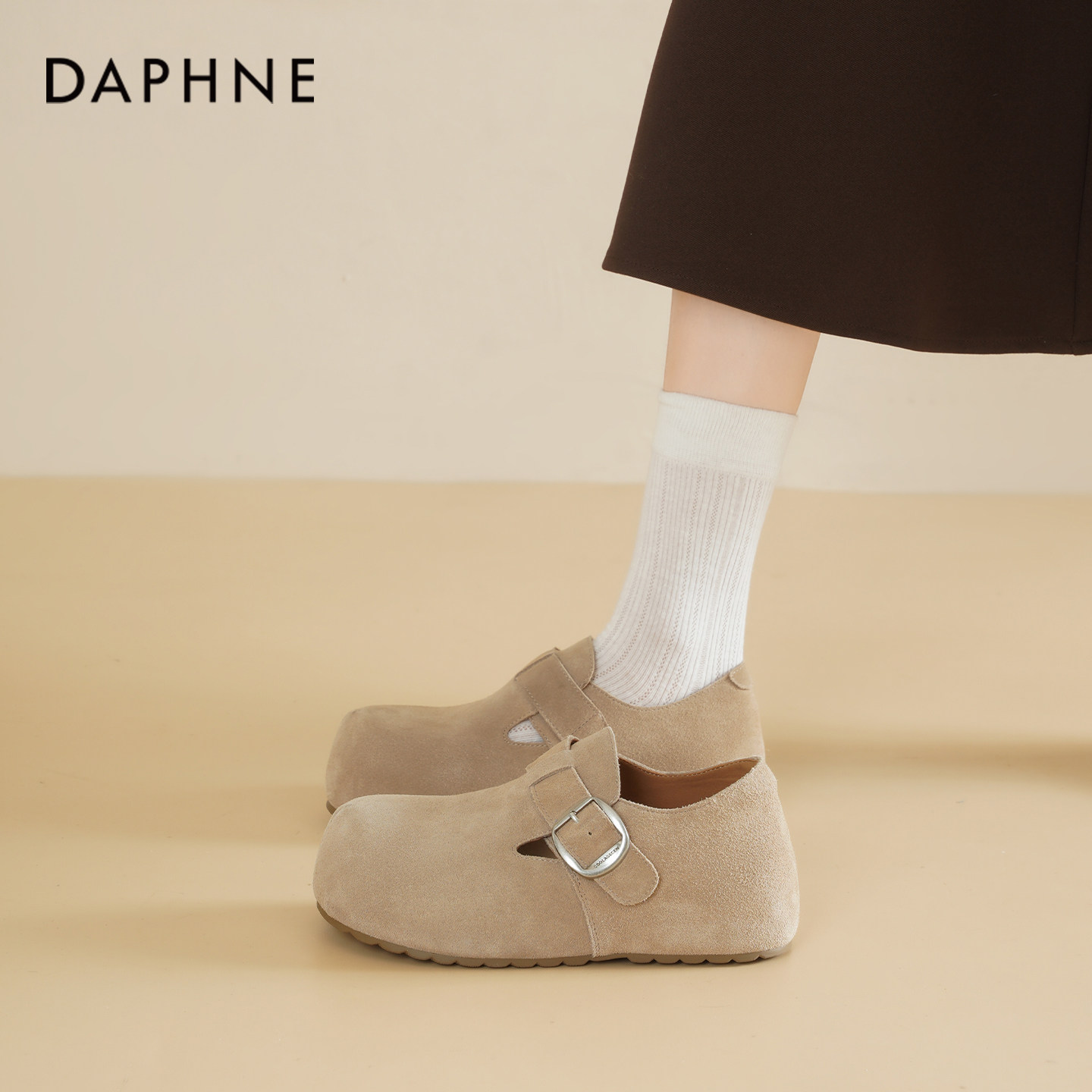 软底百搭单鞋 达芙妮厚底博肯鞋 全包真皮内增高女鞋 新款 女2026春季