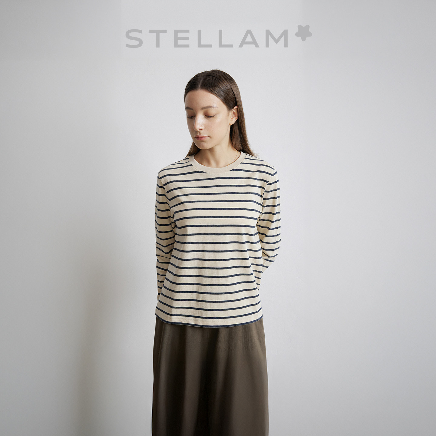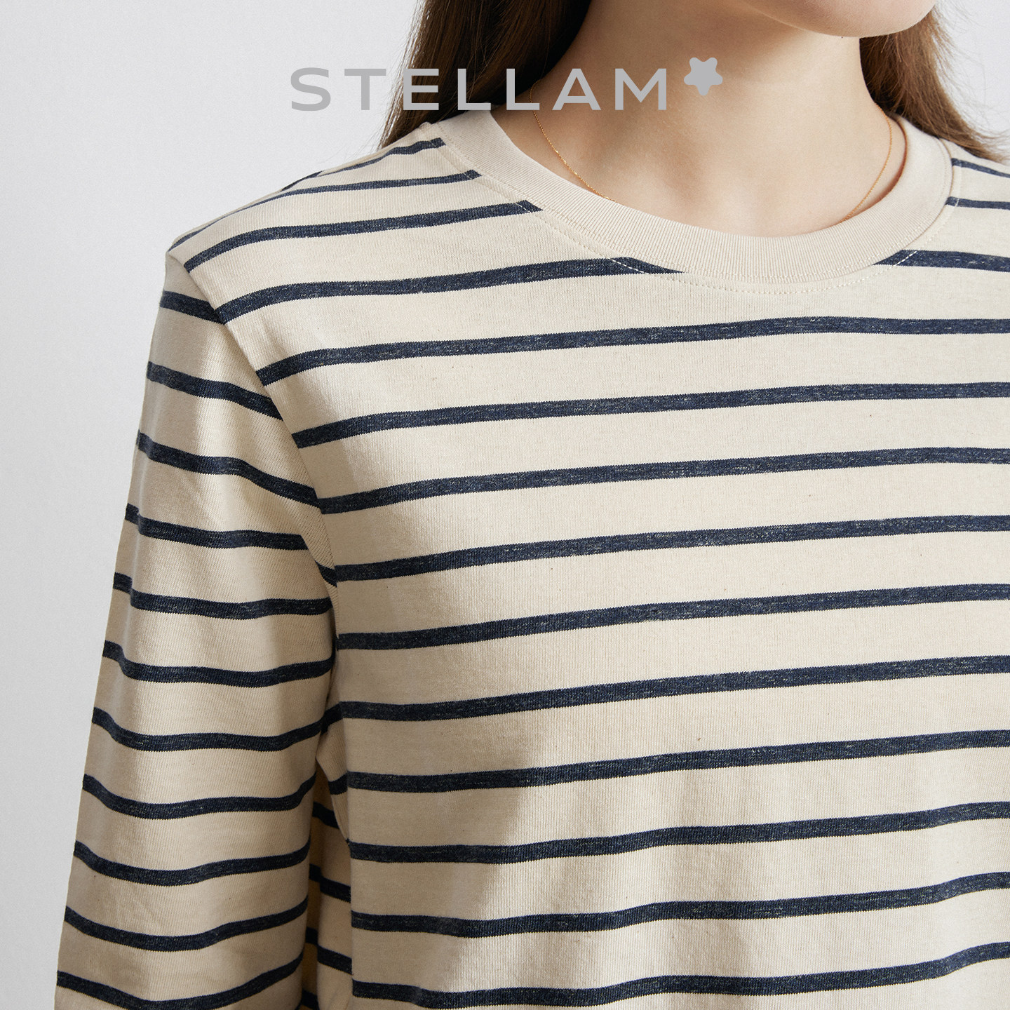 针织上衣 女极简正肩H型海魂衫 KAPOK 木棉天丝条纹衫 STELLAM