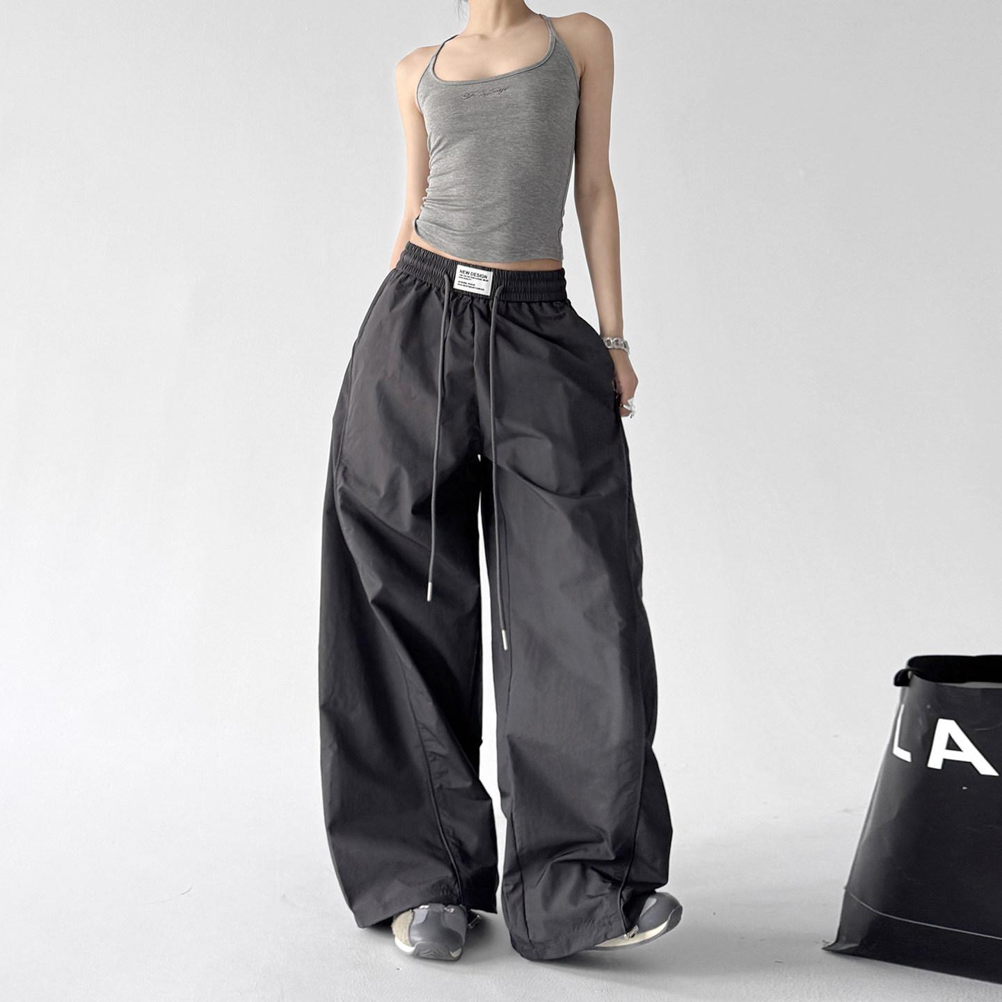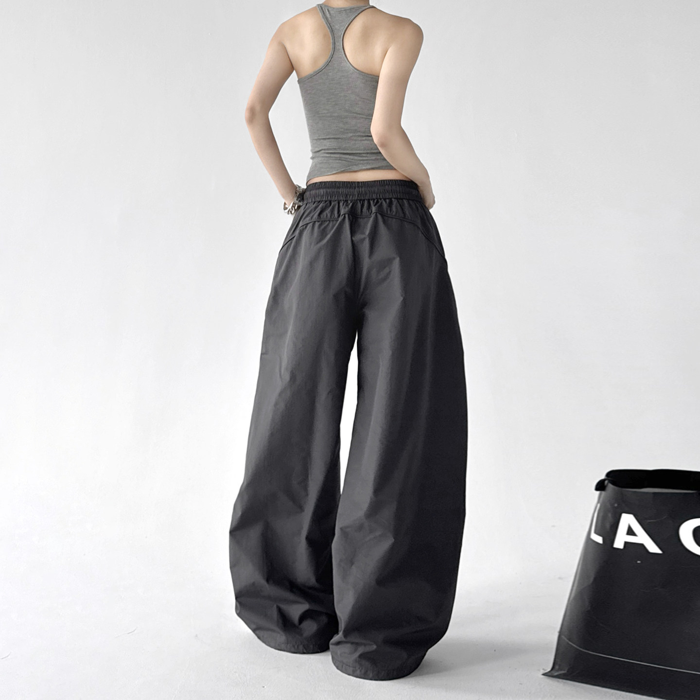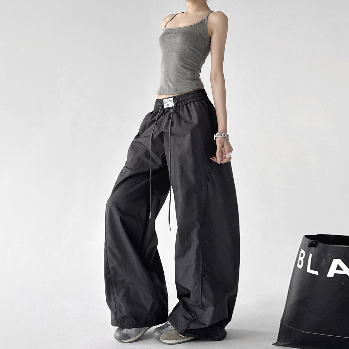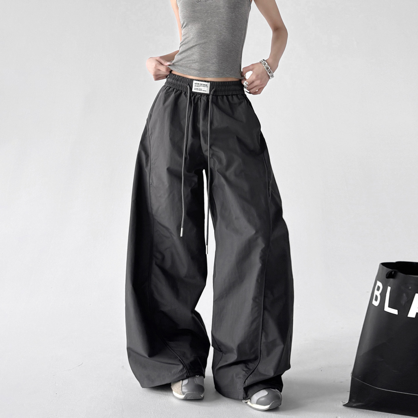 高腰松紧宽松显瘦遮肉高个子伞兵直筒阔腿裤 女2026早春新款 裤 工装