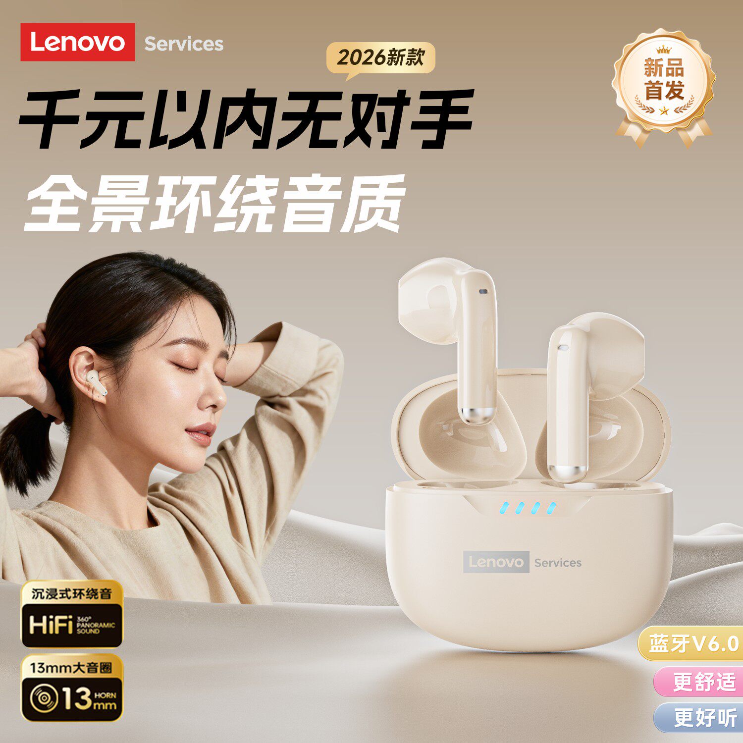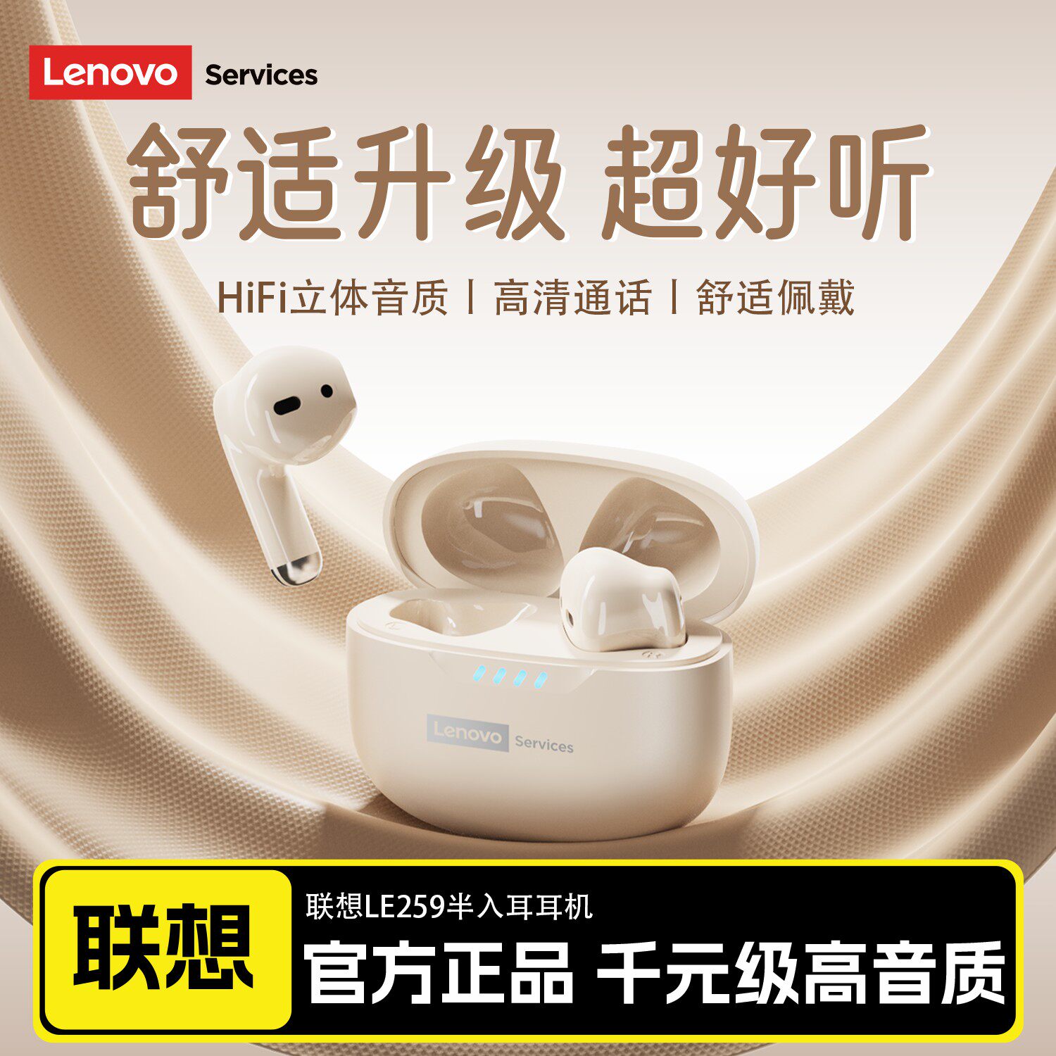 无线降噪女生久戴不痛正品 联想LE259蓝牙耳机2026新款 半入耳式