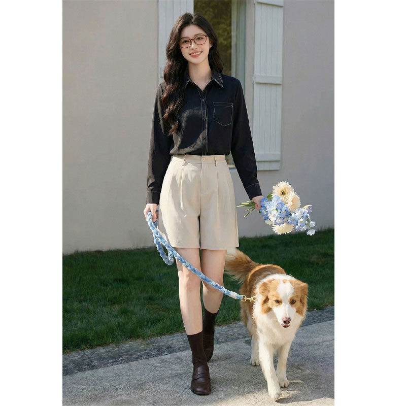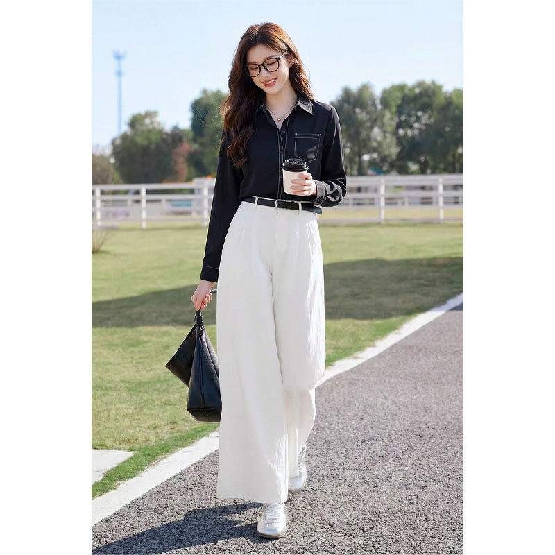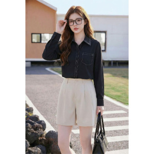 小衫 绮娑大码 显瘦明线衬衣翻领长袖 新款 胖MM上衣女套头2026年春装