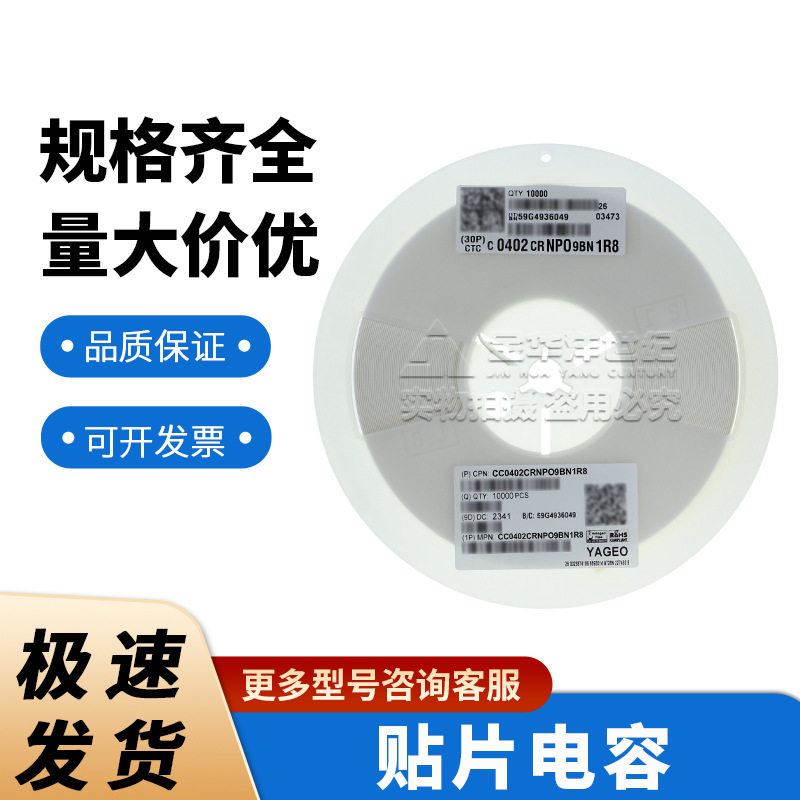50V 国巨0402 1.8pF 现货CC0402CRNPO9BN1R8 NP0 贴片陶瓷电容器