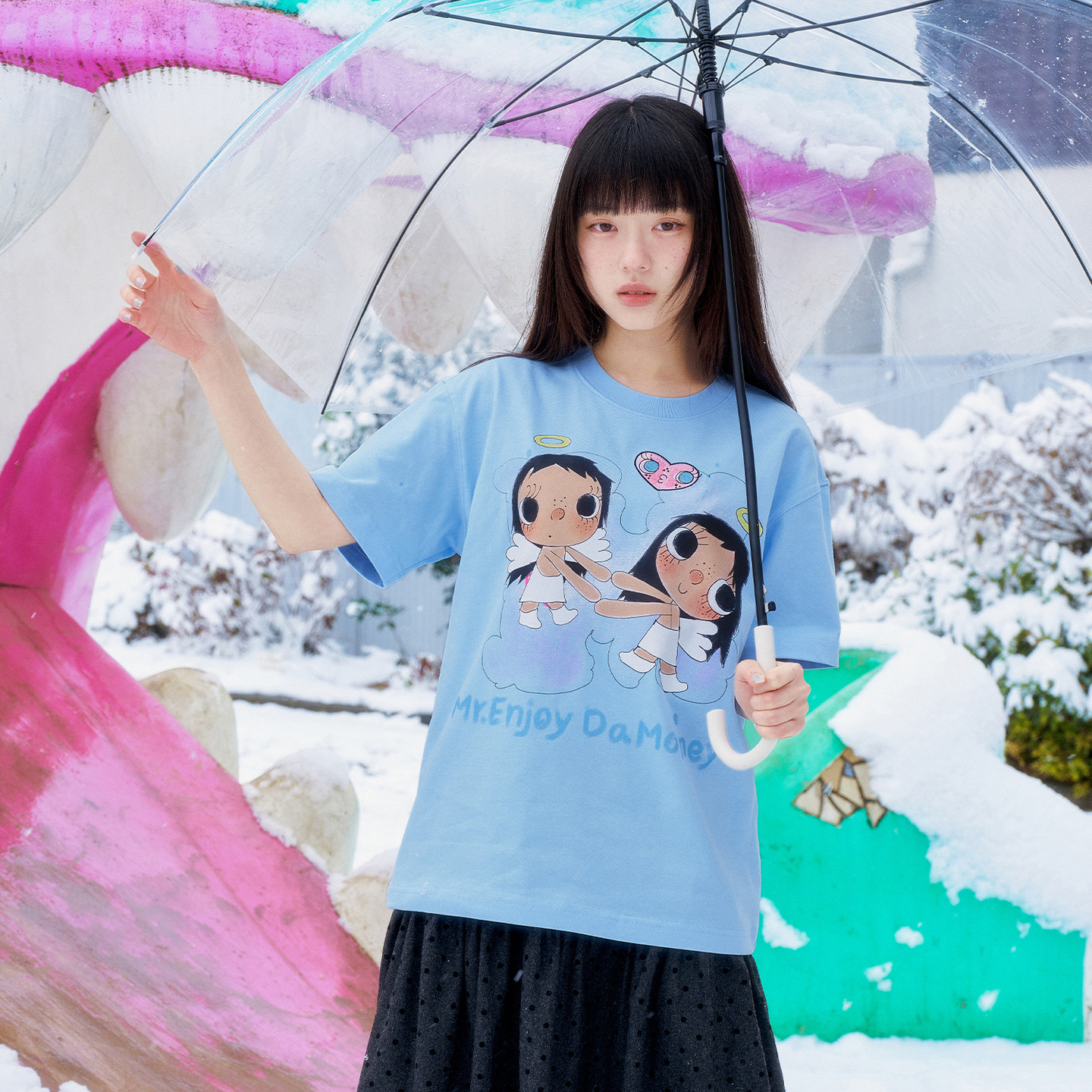 可爱宽松T恤 夏季 MEDM×YUY玉联名 天使印花爱心刺绣休闲圆领短袖