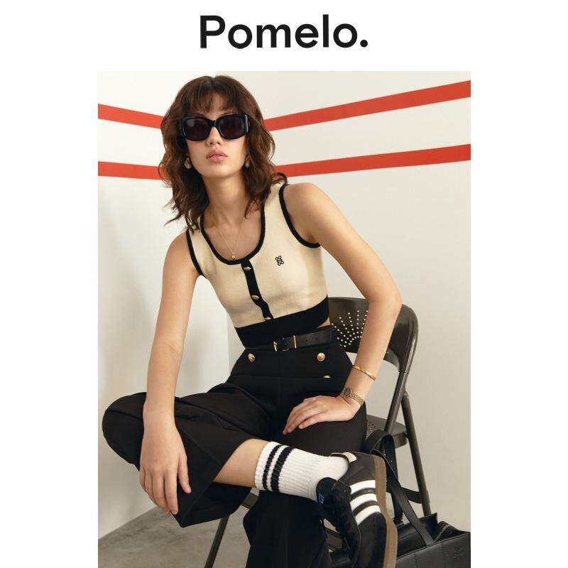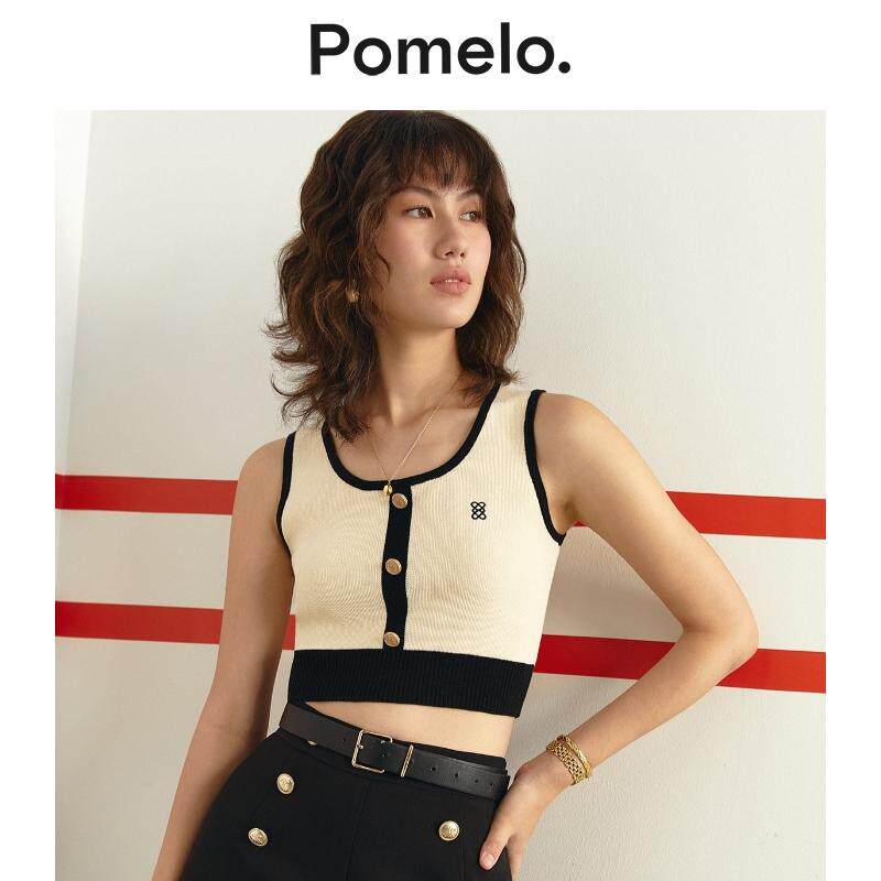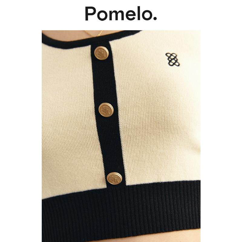 短款 Logo 针织吊带背心女 简约撞色奶油色金属 Pomelo