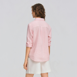 撞色条纹翻领通勤亚麻混纺衬衫 POLOWALK女士长袖 新款 2026春季 衬衫