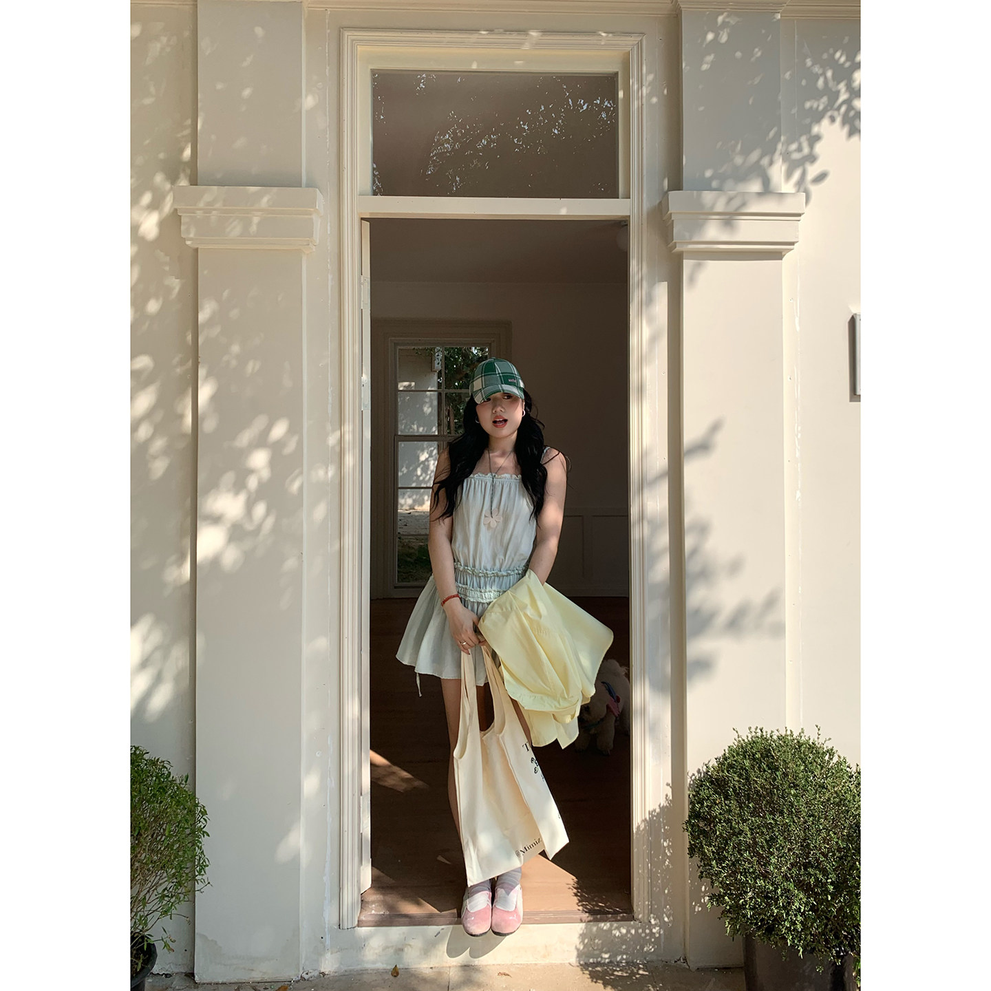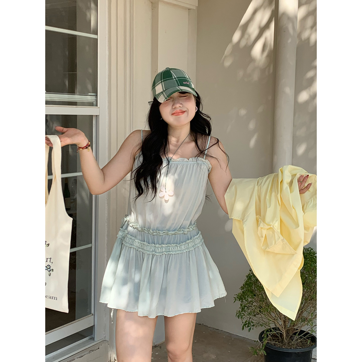 风气质rosy同款 米米子微胖大码 时尚 青柠薄荷 吊带上衣春 胖mm