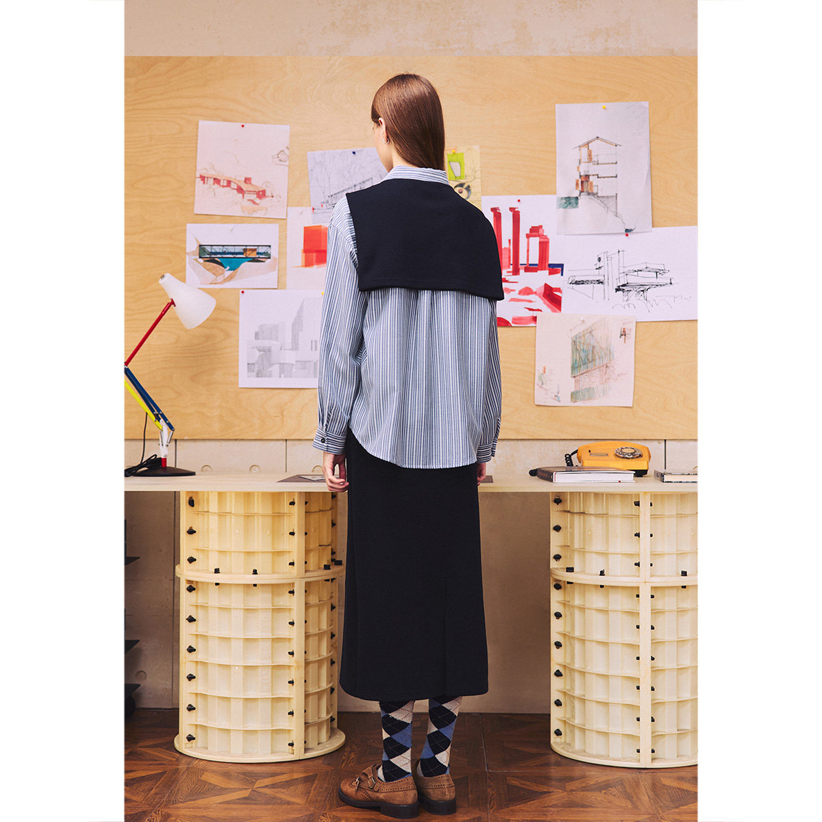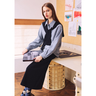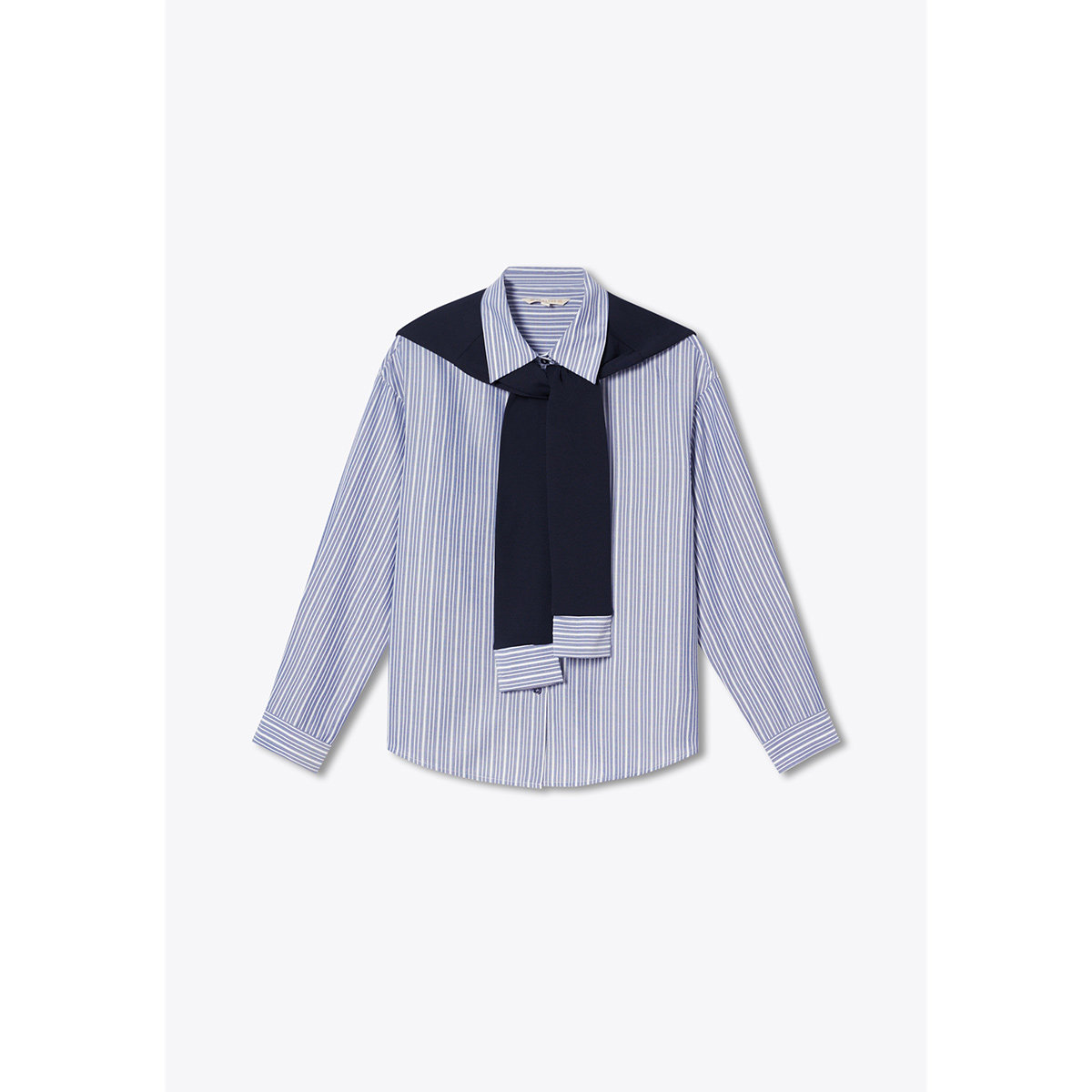 新款 诗篇专选时尚 女宽松显瘦披肩设计上衣2026春季 衬衫 条纹长袖