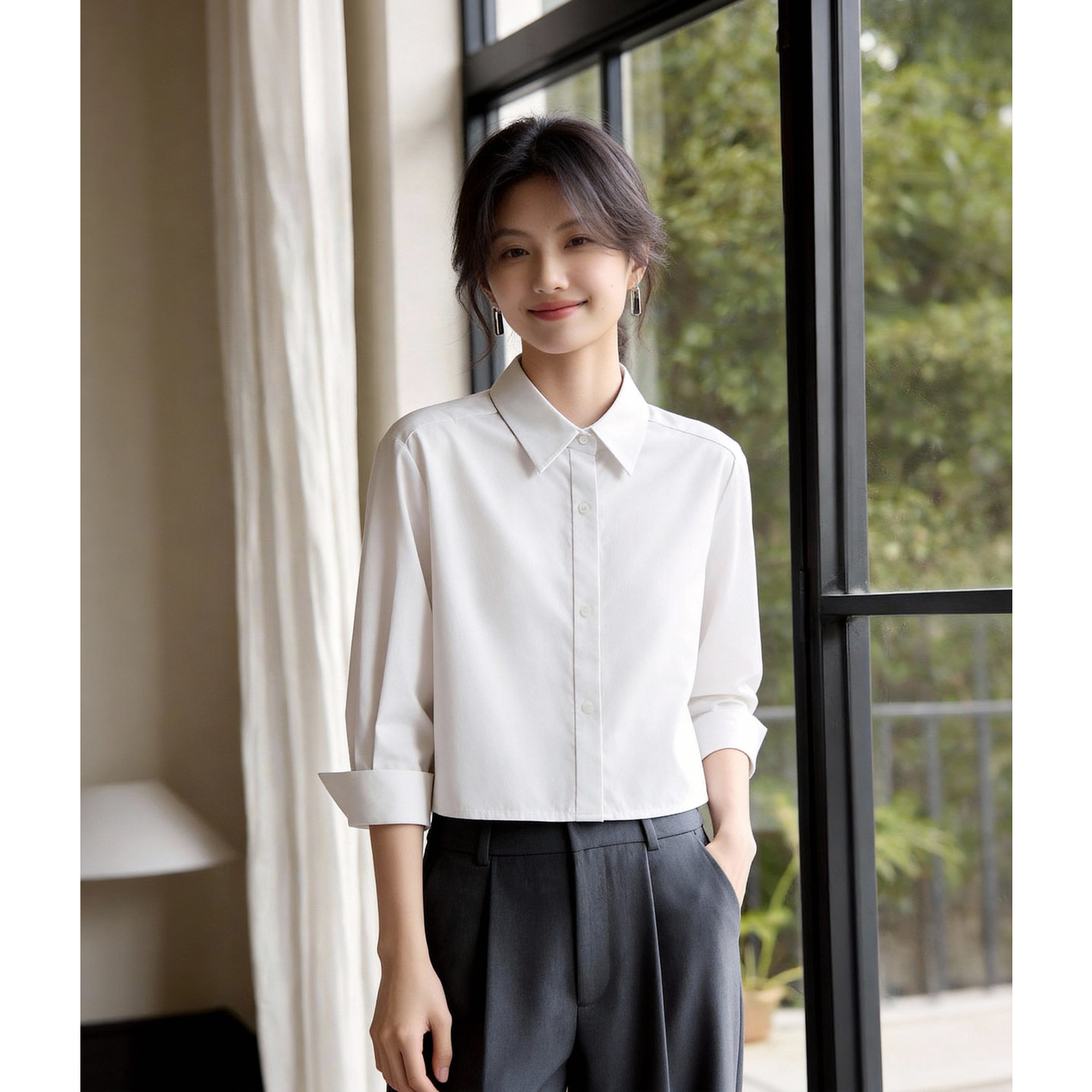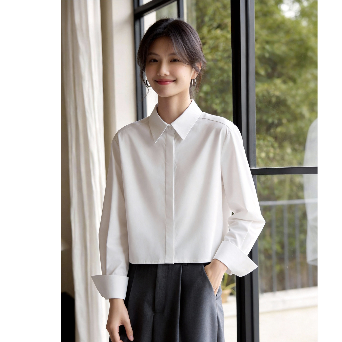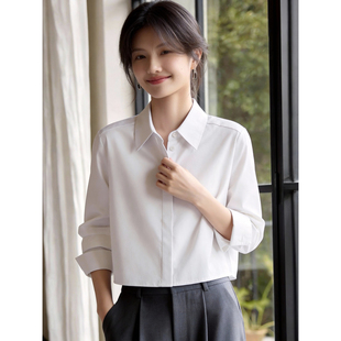 叠穿气质衬衣通勤上衣春夏季 Basic 衬衫 百家好棉感白色长袖 House