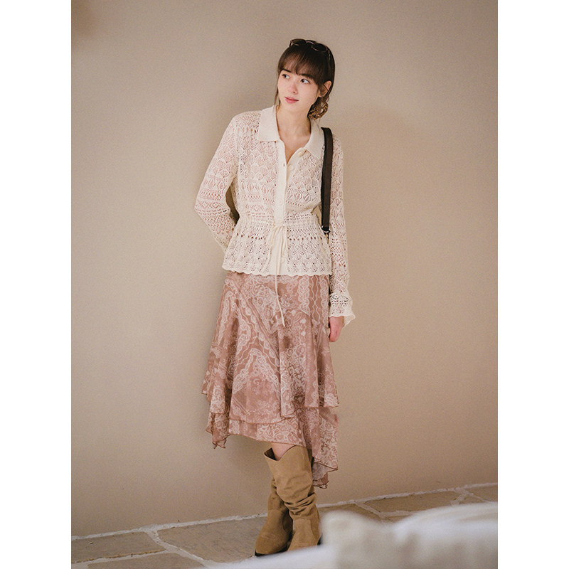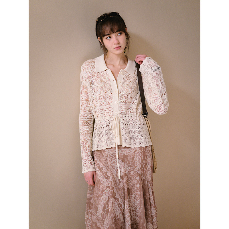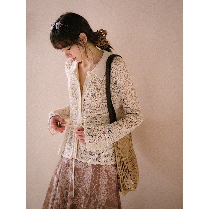 立体钩花针织翻领开衫 莱赛尔亚麻 上衣 Vintage Even