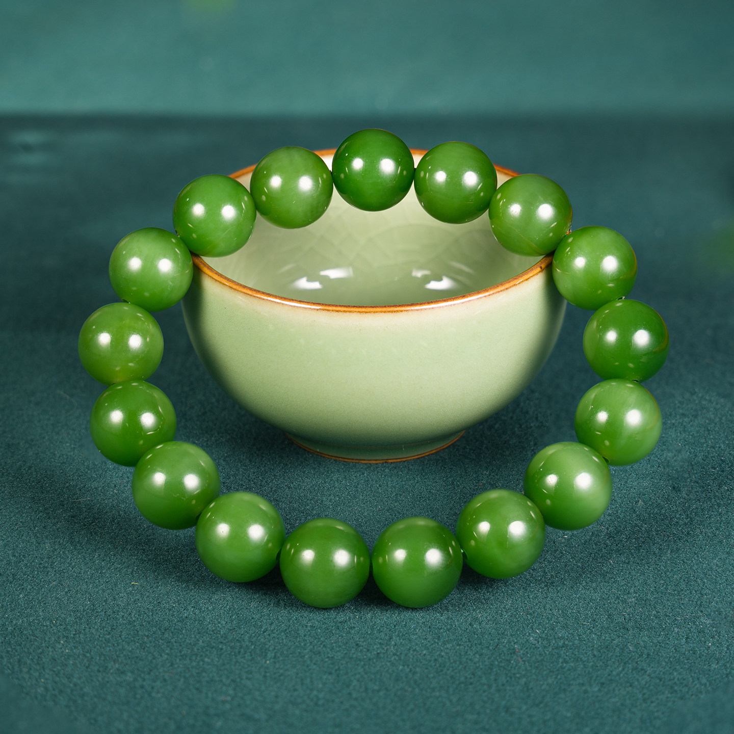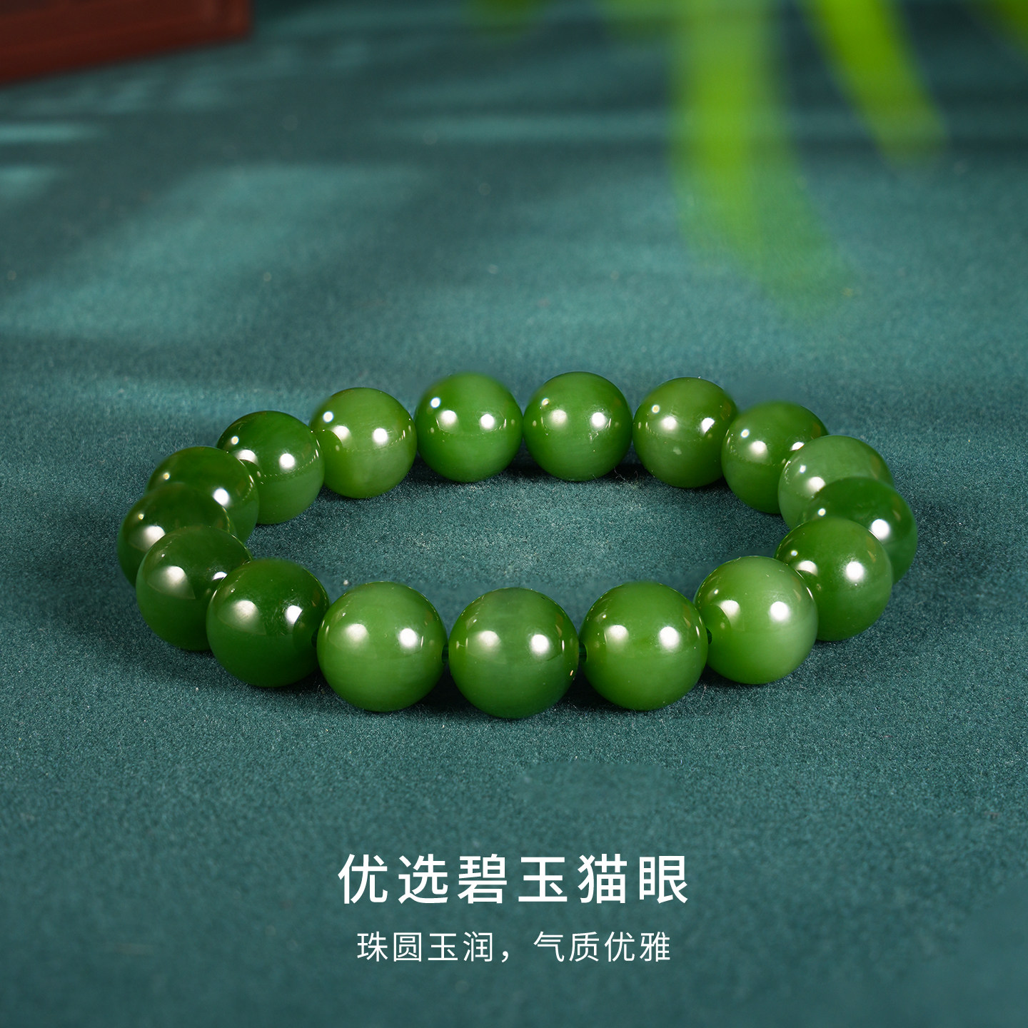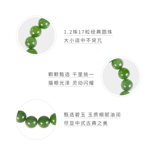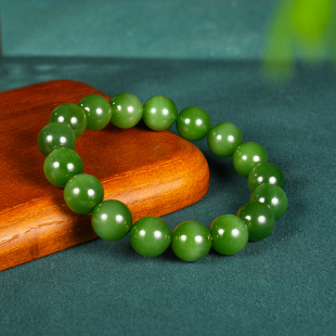 L和田玉碧玉菠菜绿猫眼12mm手串手链玉石珠串17粒圆珠女士礼物