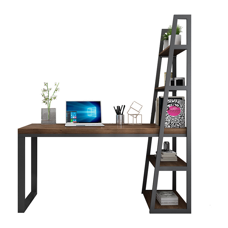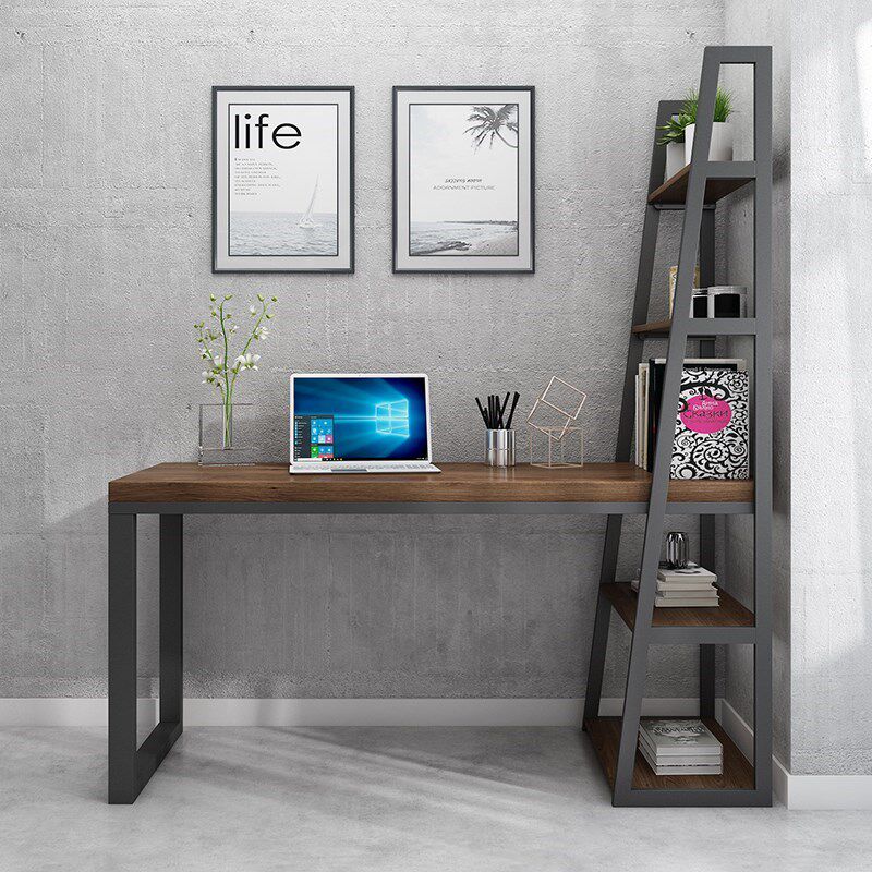 实木转角书桌书架组合一体台式 电脑办公桌简约家用拐角学习桌书柜