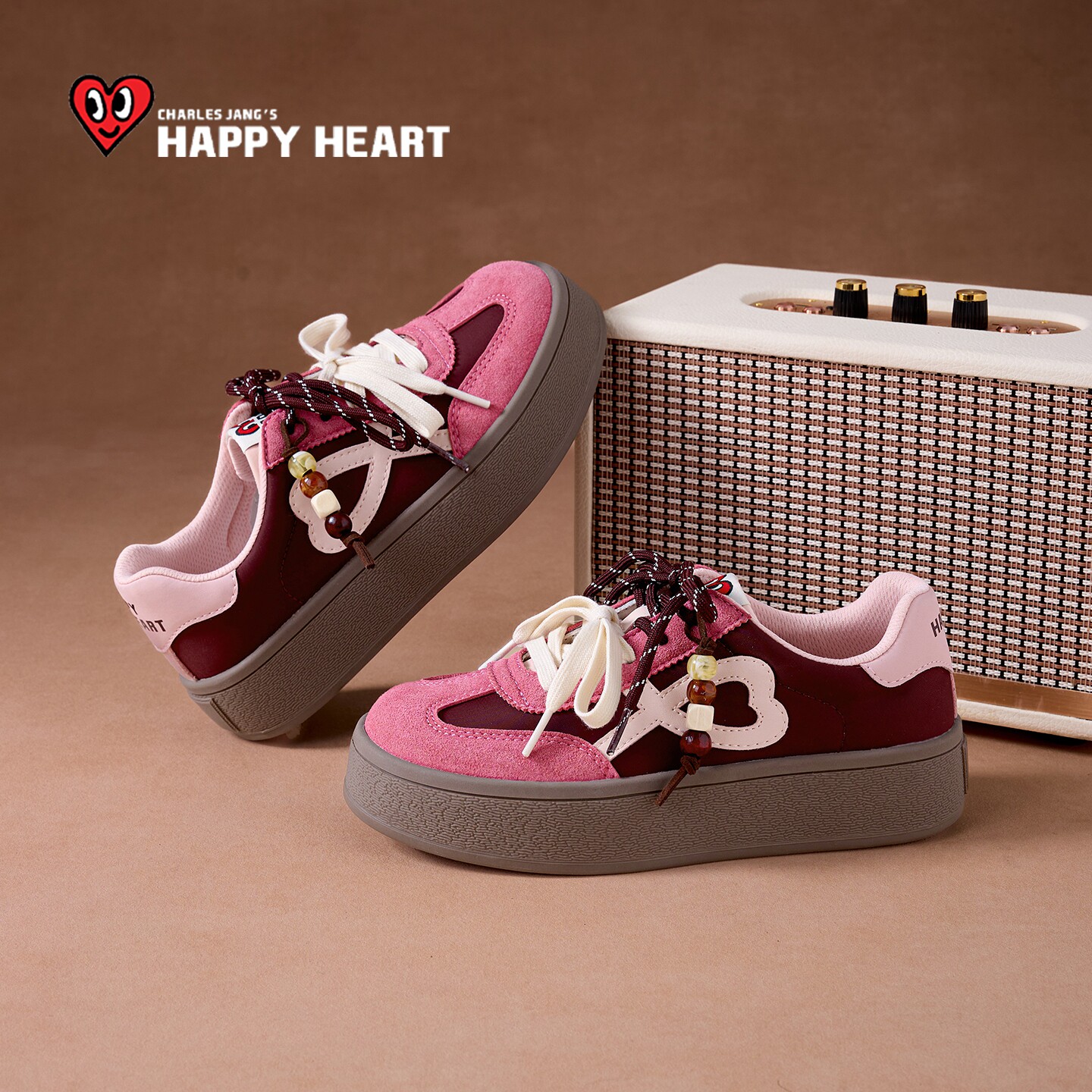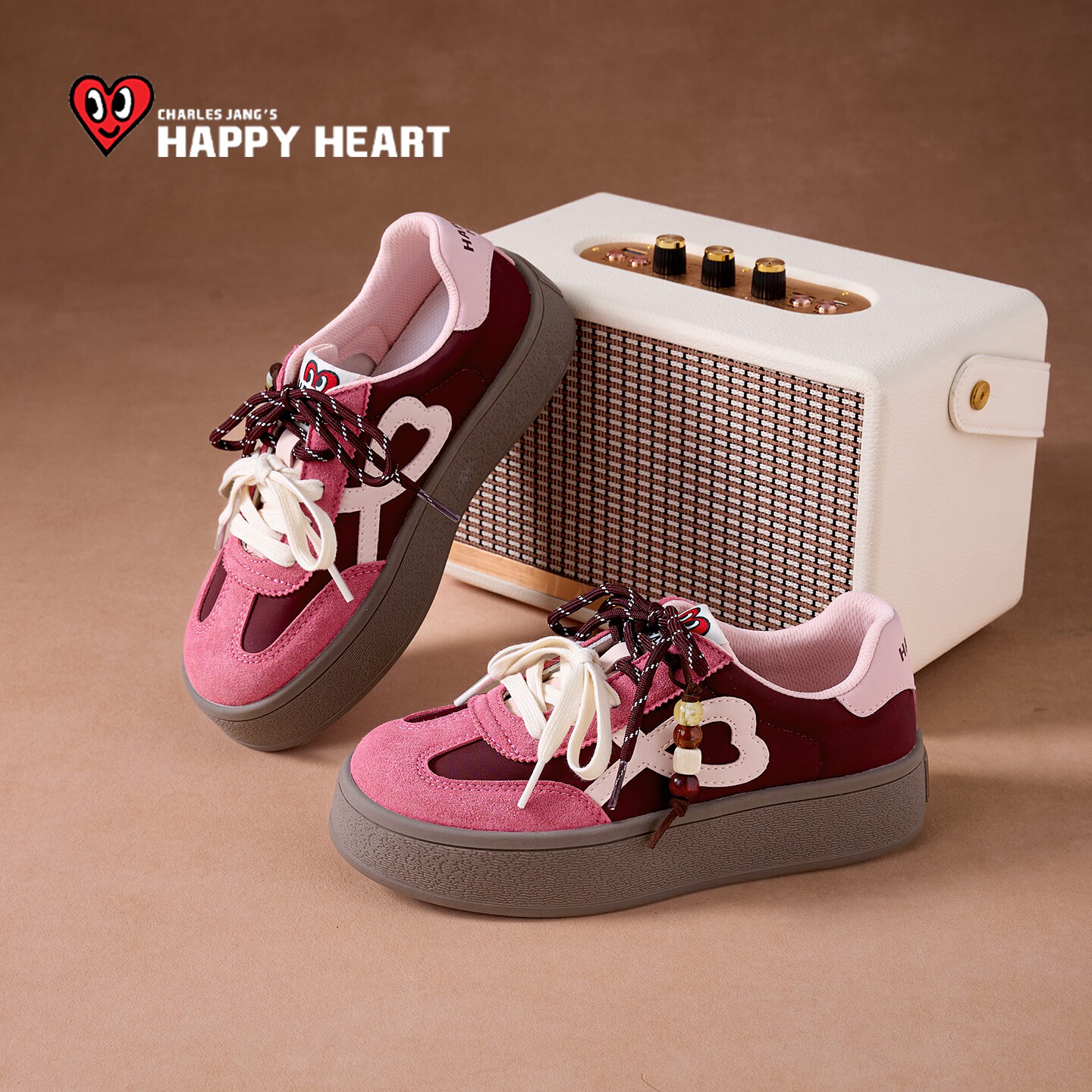 百搭运动女鞋 查尔斯桃心休闲板鞋 厚底增高德训鞋 春季 子 女2026新款