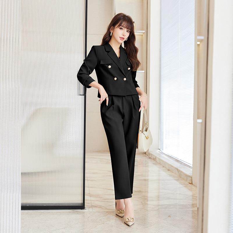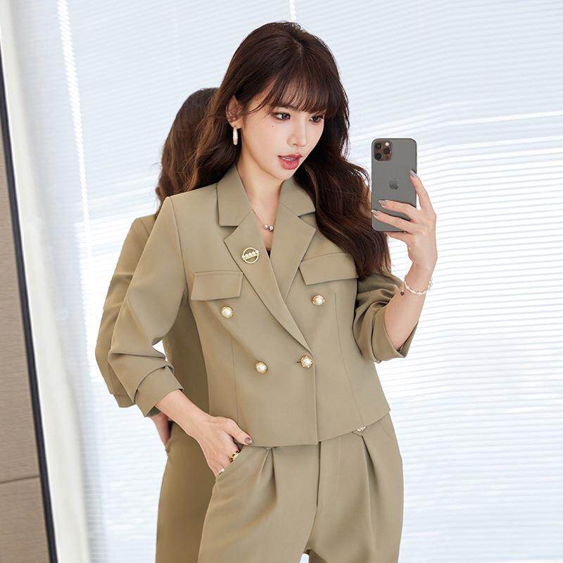 长袖 短款 YLF8022 职业休闲西装 子百小褶裙领 年春秋季 外套女裤 新款