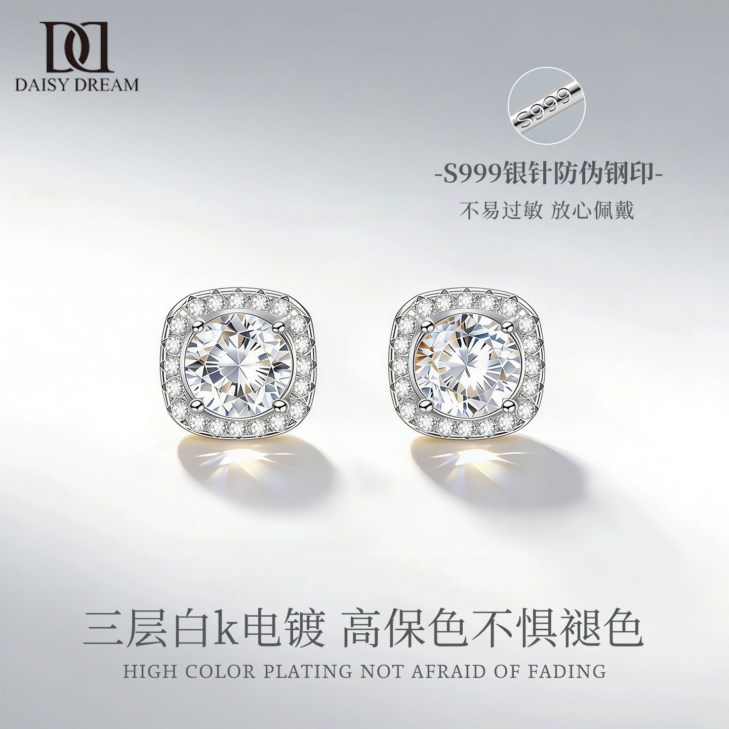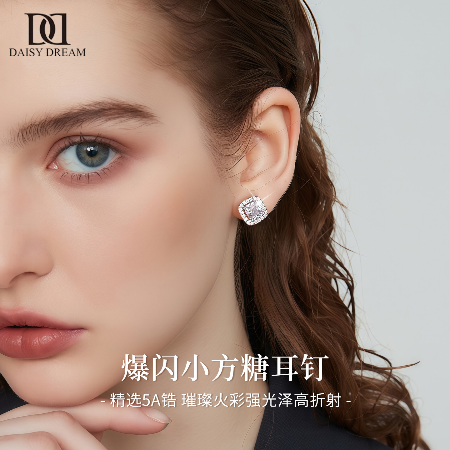 999纯银针爆闪方糖耳钉女小众高级感轻奢耳环养耳洞精致气质耳饰