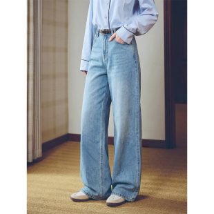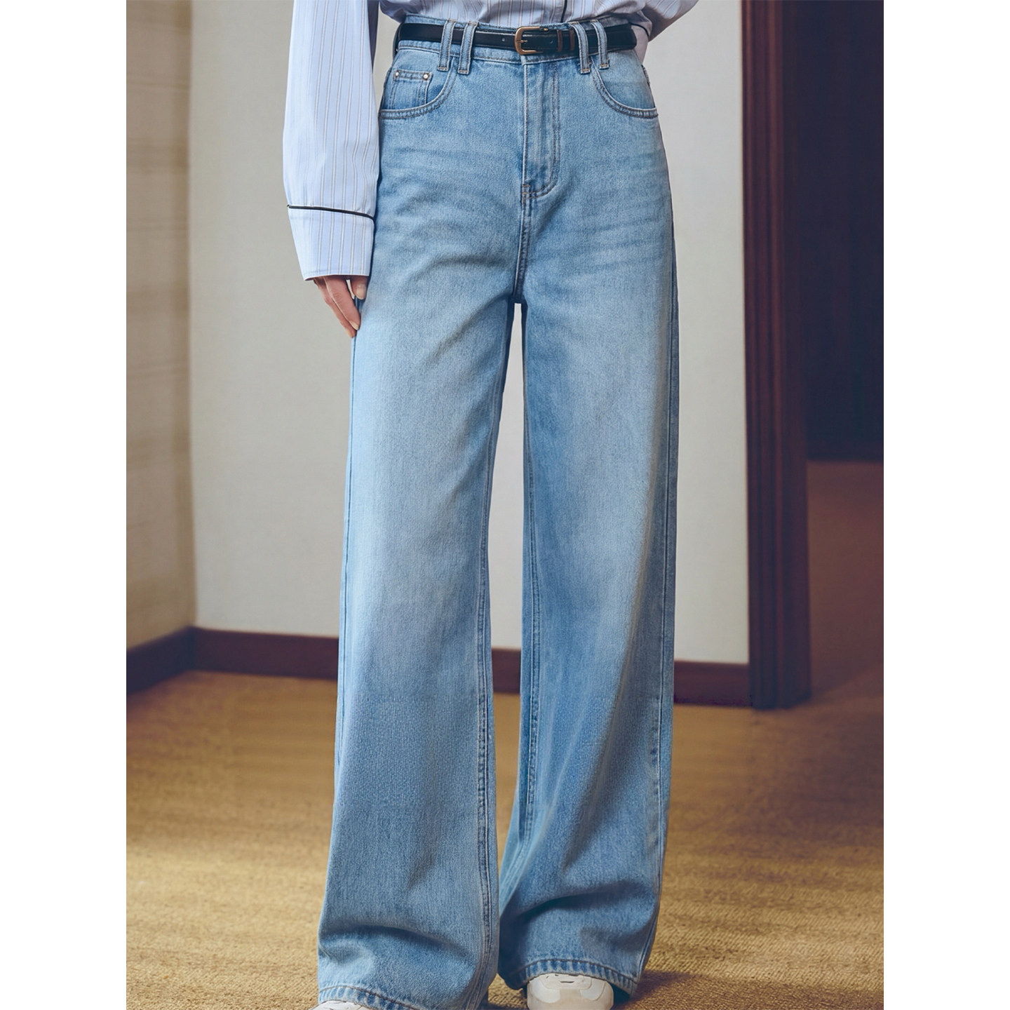 House 直筒拖地裤 百家好复古蓝色阔腿牛仔裤 新款 女2026春季 Basic