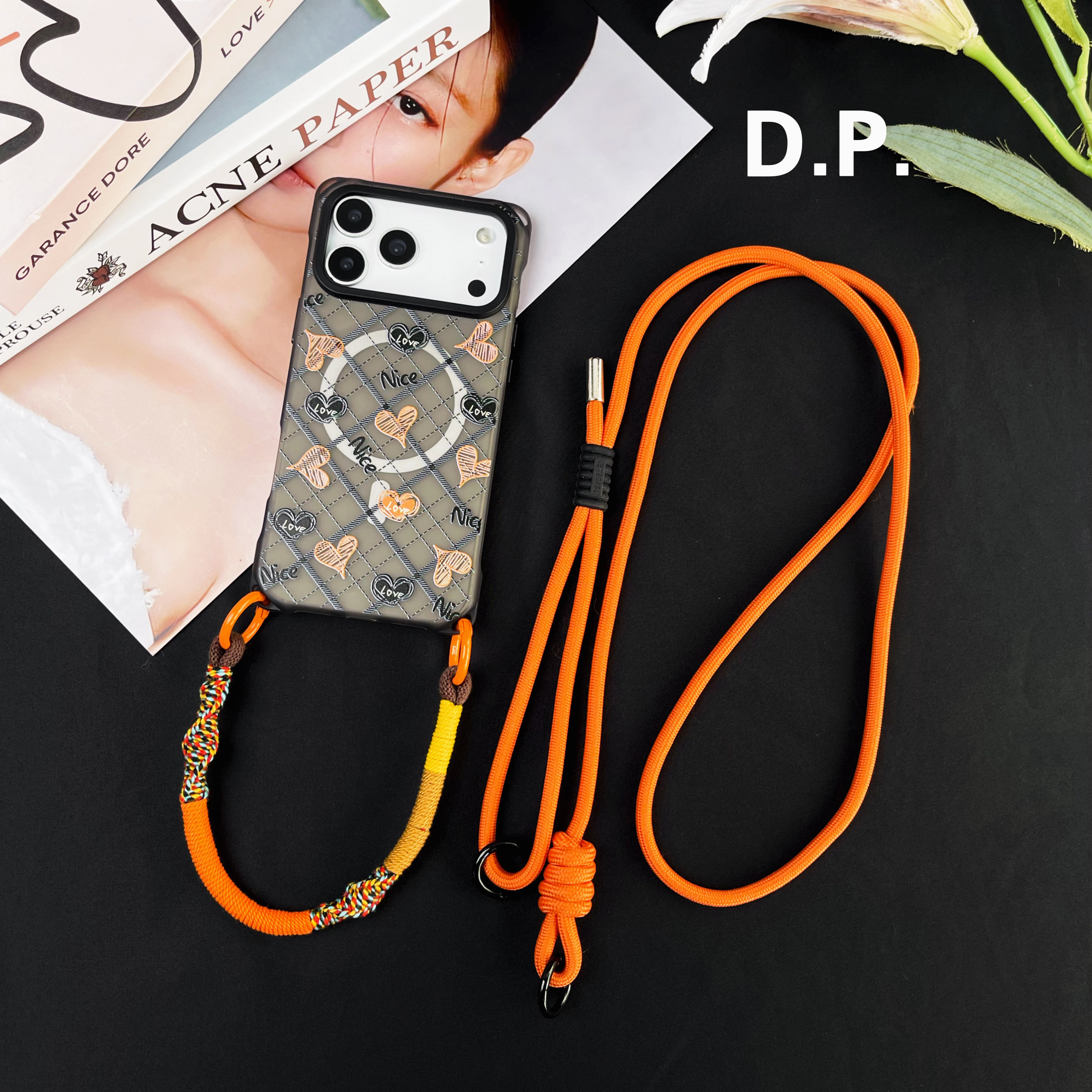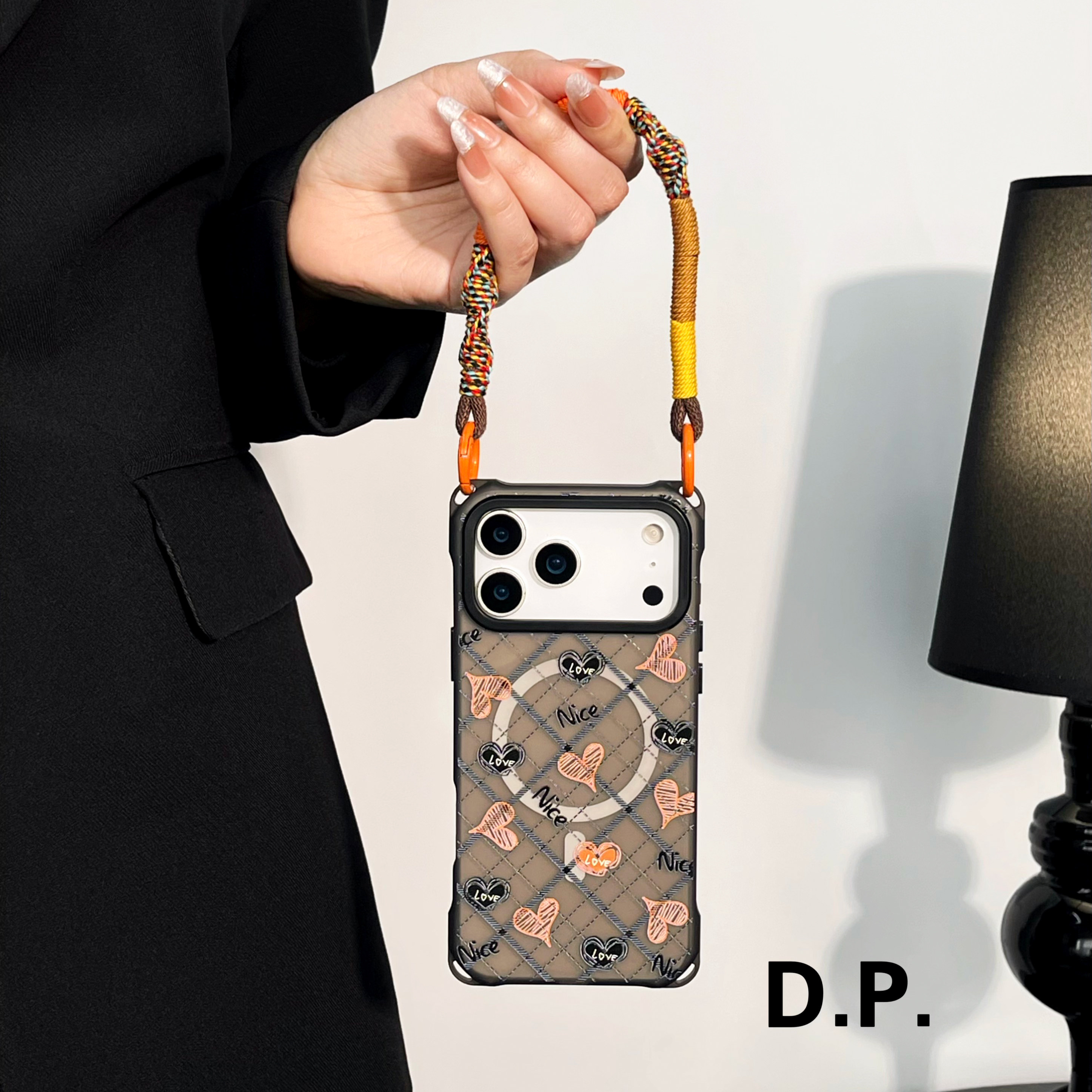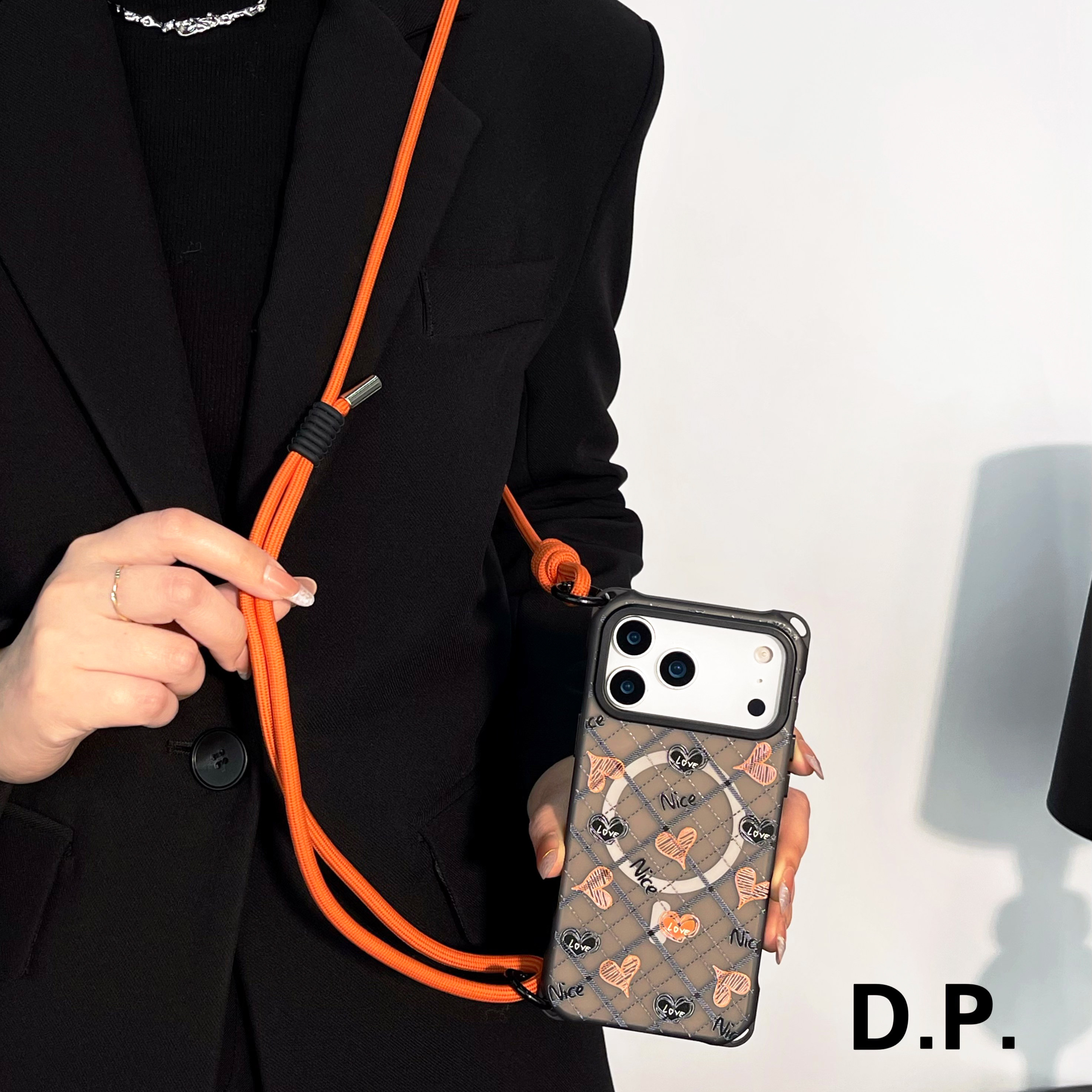 pura80 华为mate60 70可斜挎侧背带手提四角开孔小众 14苹果iPhone17promax 斜纹心磁吸挂绳手机壳适用小米15