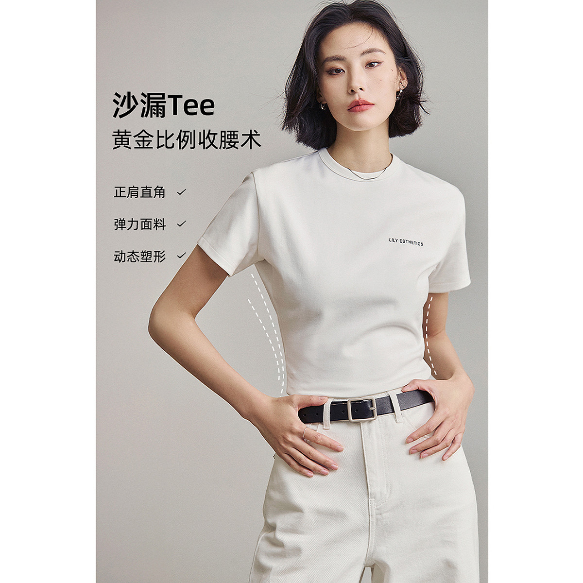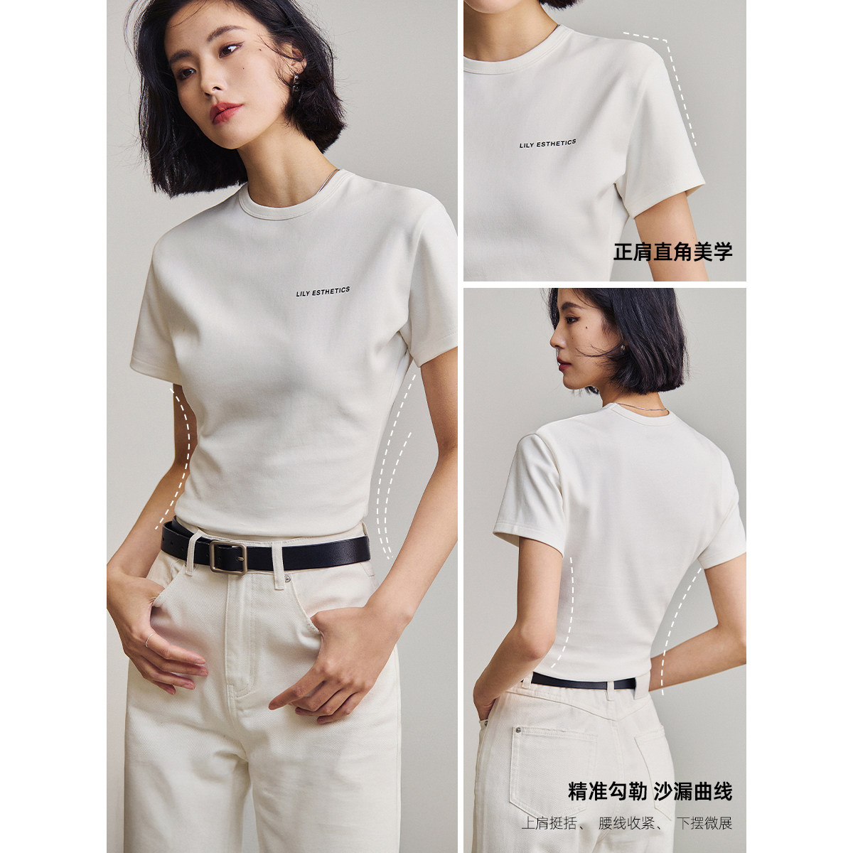 T恤上衣内搭 简约休闲圆领百搭通勤正肩短袖 LILY2026夏新款 女装