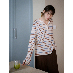 T恤夏季 Even 亨利领复古细条纹长袖 兰精莫代尔亚麻 Vintage