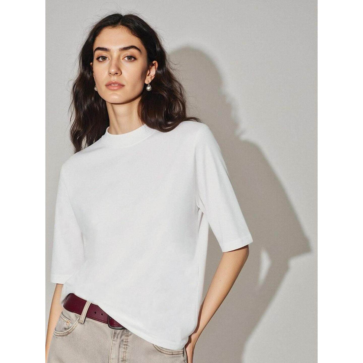 House 宽松半袖 百家好白色立领短袖 新款 上衣 T恤女2026春季 Basic