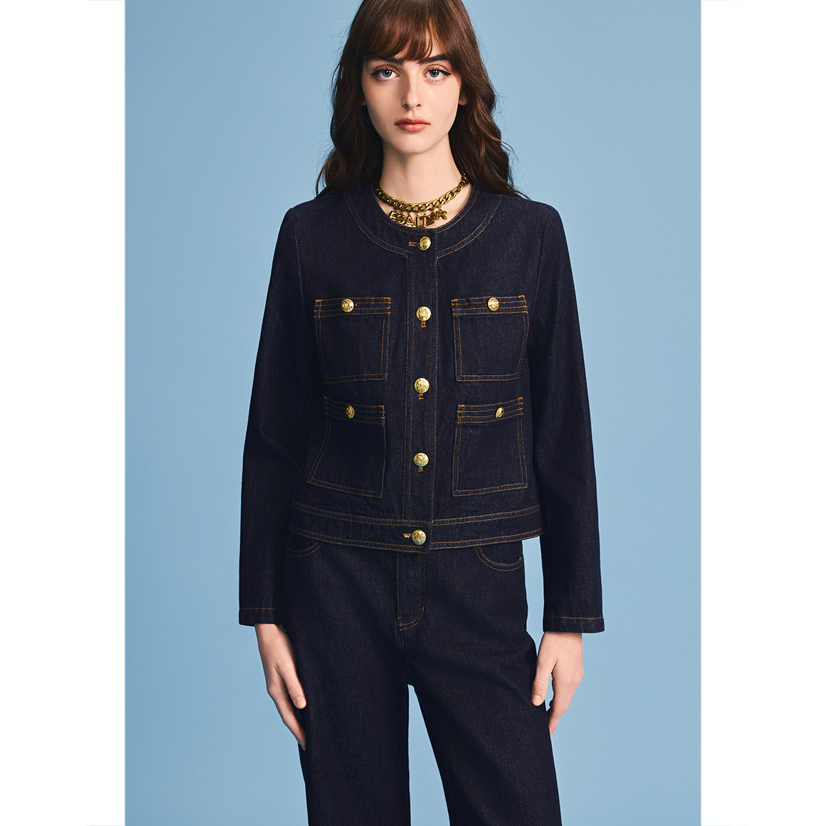 诗篇专选复古丹宁圆领小香风牛仔短外套2026春季 新款