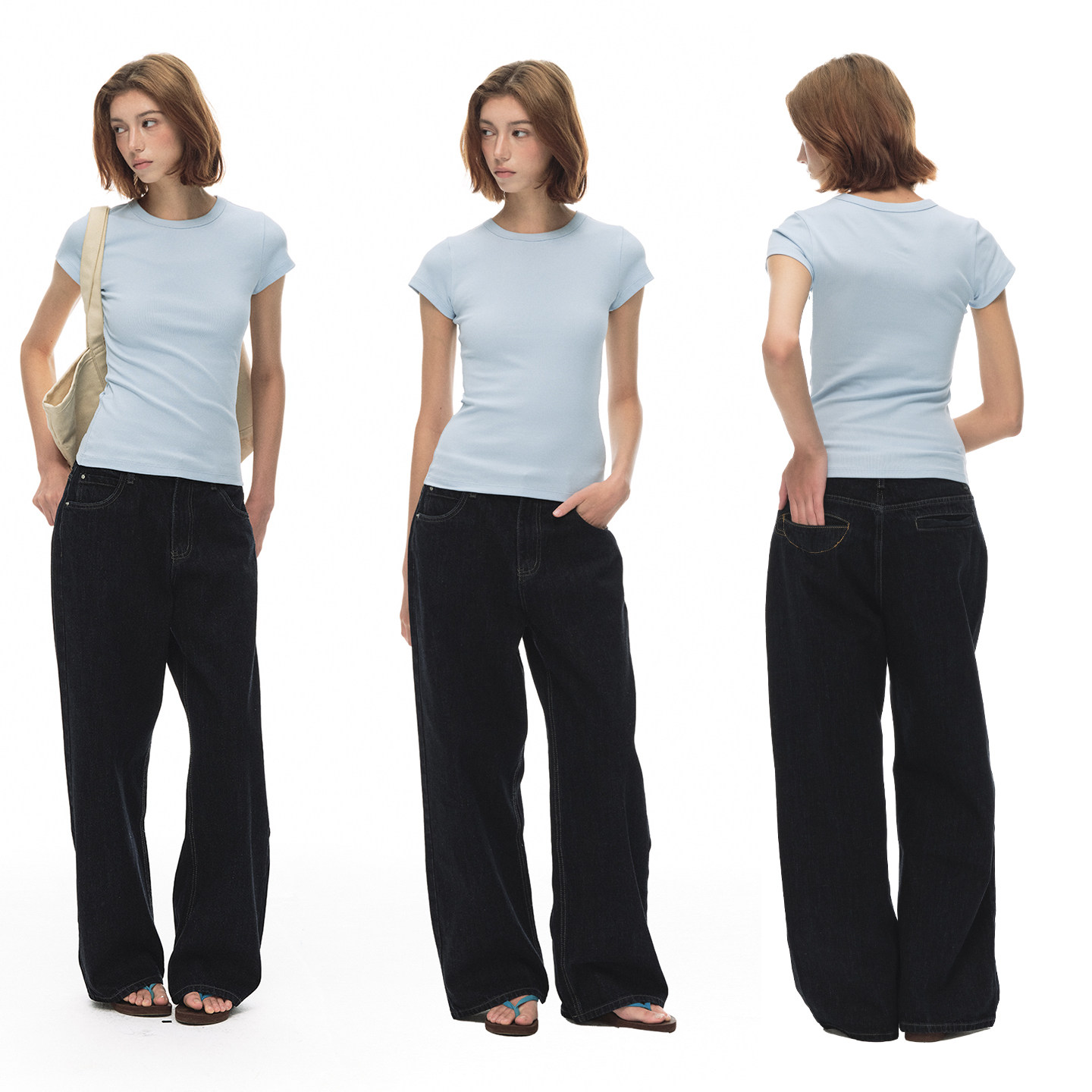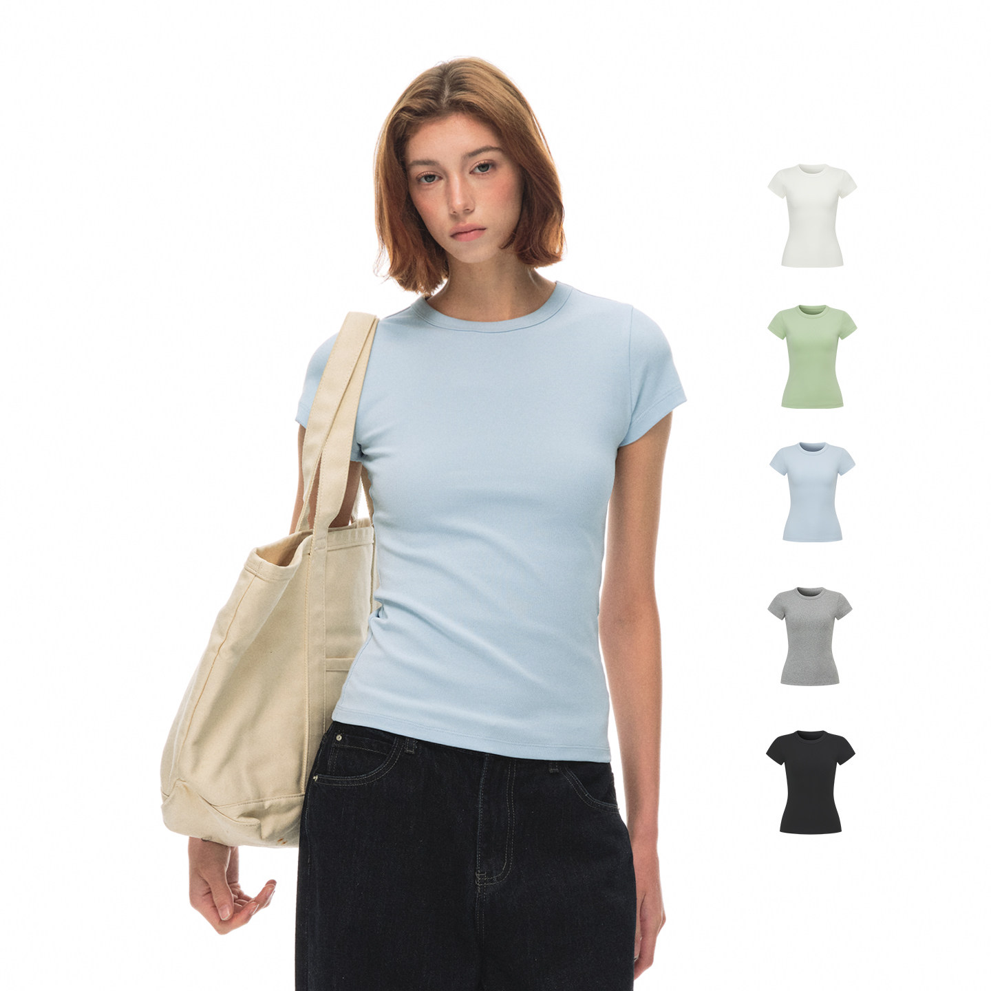 打底上衣 显瘦纯色基础短袖 CountryMoment美式 休闲正肩T恤女夏修身