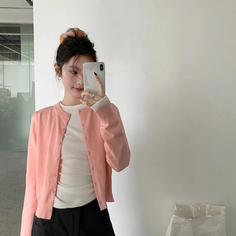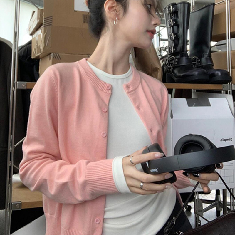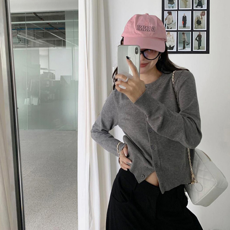 短款 女春秋miu系穿搭修身 毛衣外套内搭上衣 针织开衫 韩系黑色薄款