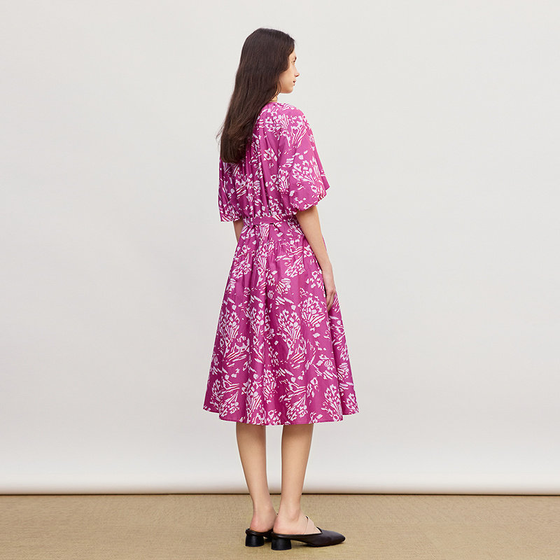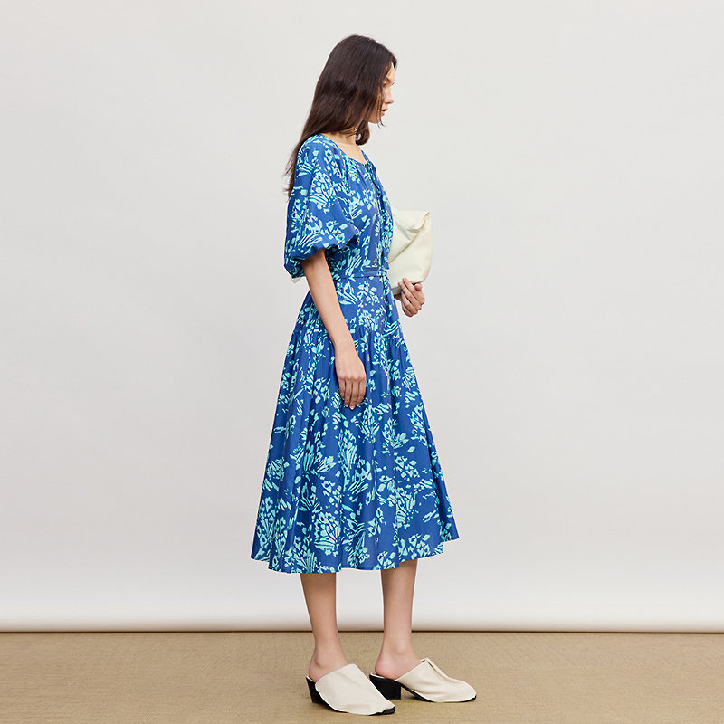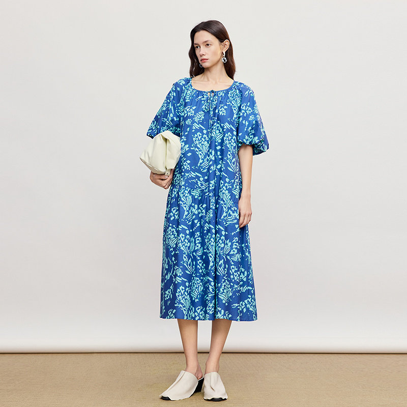 泡泡袖 新款 AUM噢姆2026年夏季 收腰印花娃娃连衣裙长裙 FaFa裙