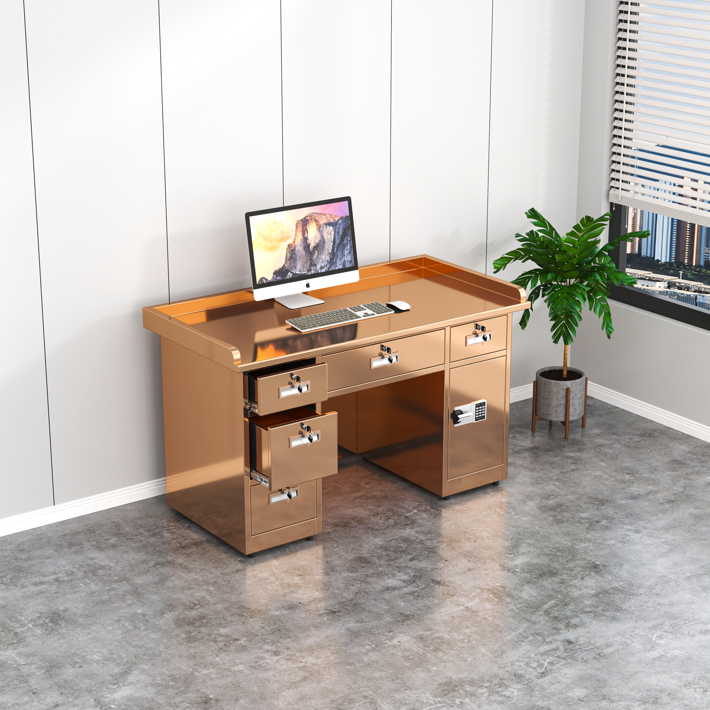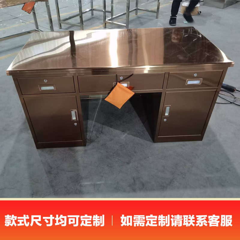 304不锈钢玫瑰金办公桌车间工作台带抽屉医疗实验室操作台电脑桌