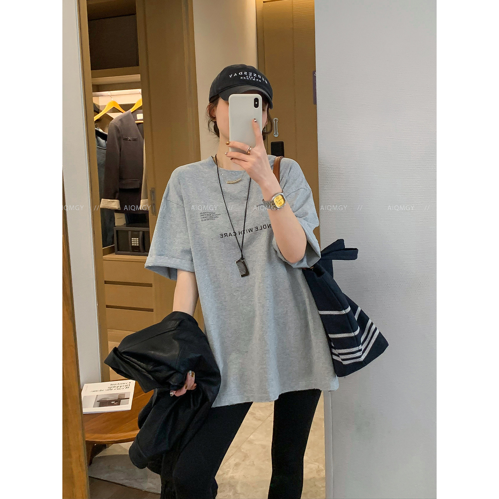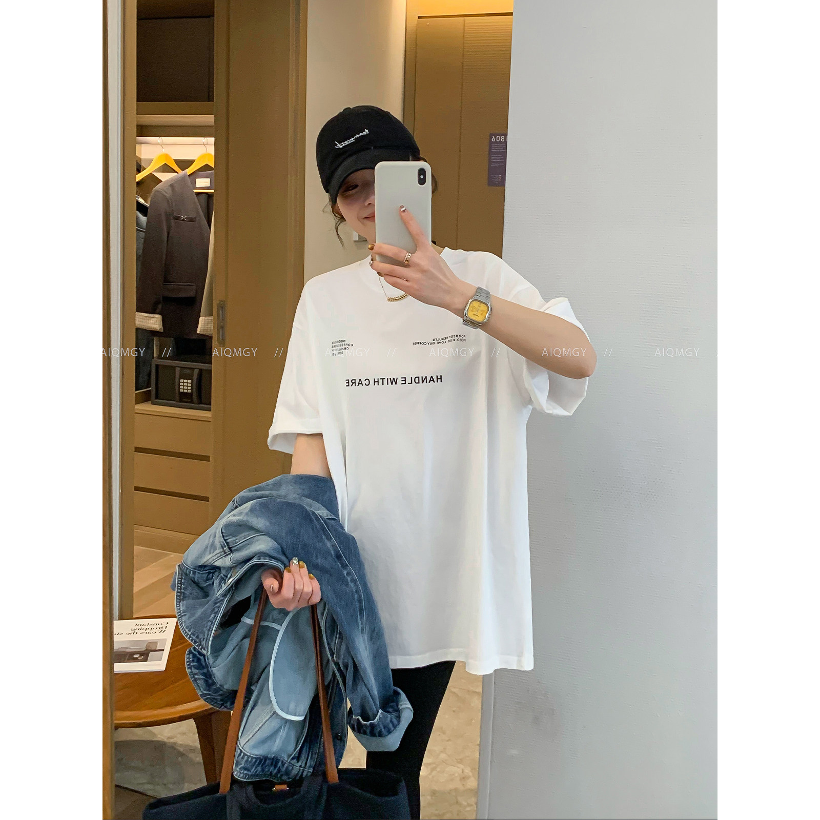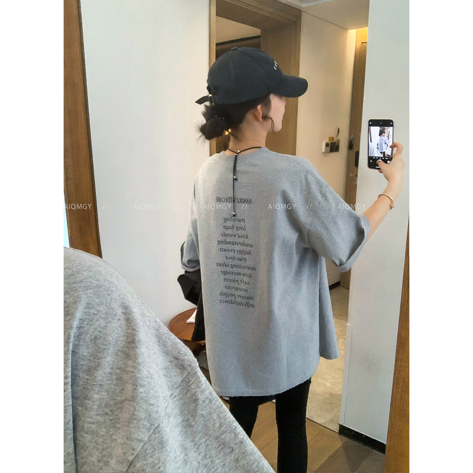 新款 圆领字母印花T恤女2026年春季 宽松上衣 白色五分袖 爱情魔鬼鱼
