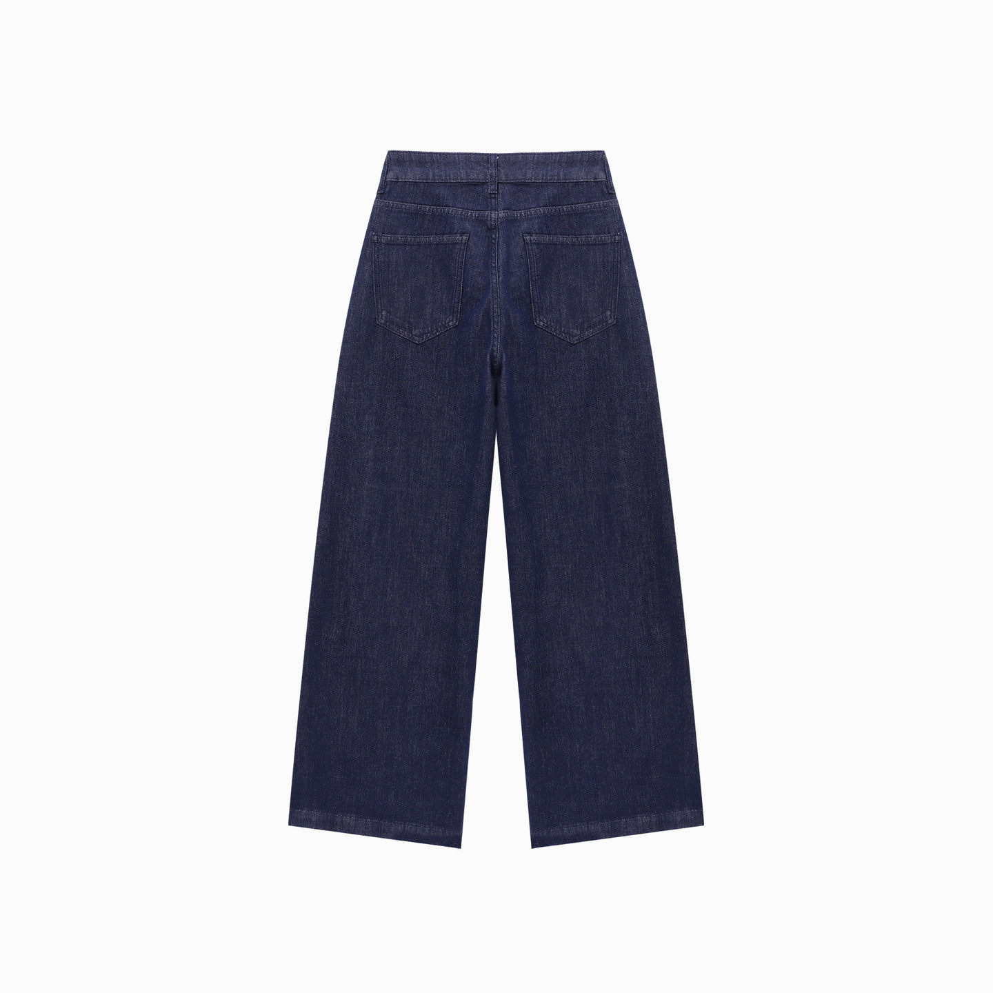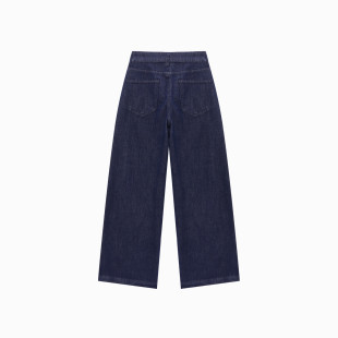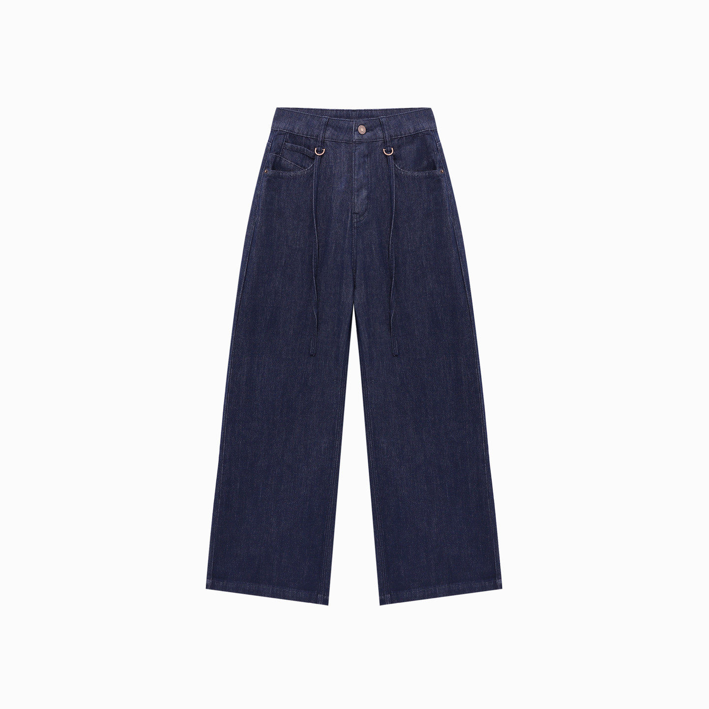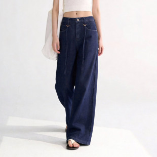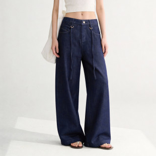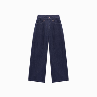 女士高腰显瘦设计感休闲长裤 新款 子 春季 百家好复古抽绳阔腿牛仔裤
